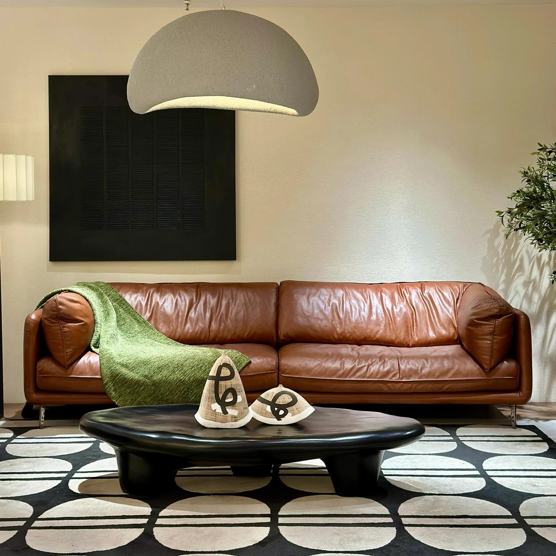2025年新作!モダンでシンプルなリビングソファ、高級感あふれるレトロデザインの北米産ウォールナットと本革使用。洗練されたスタイルで、あなたのリビングを格上げする一品です!
