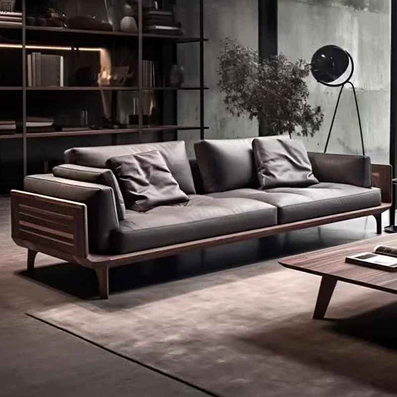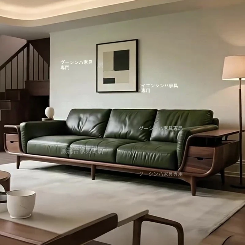 北米産ブラックウォールナット使用!宋氏美学2025年新作・高級別荘向け本革製ストレートソファ。洗練されたデザインで、リビングルームを格上げ!