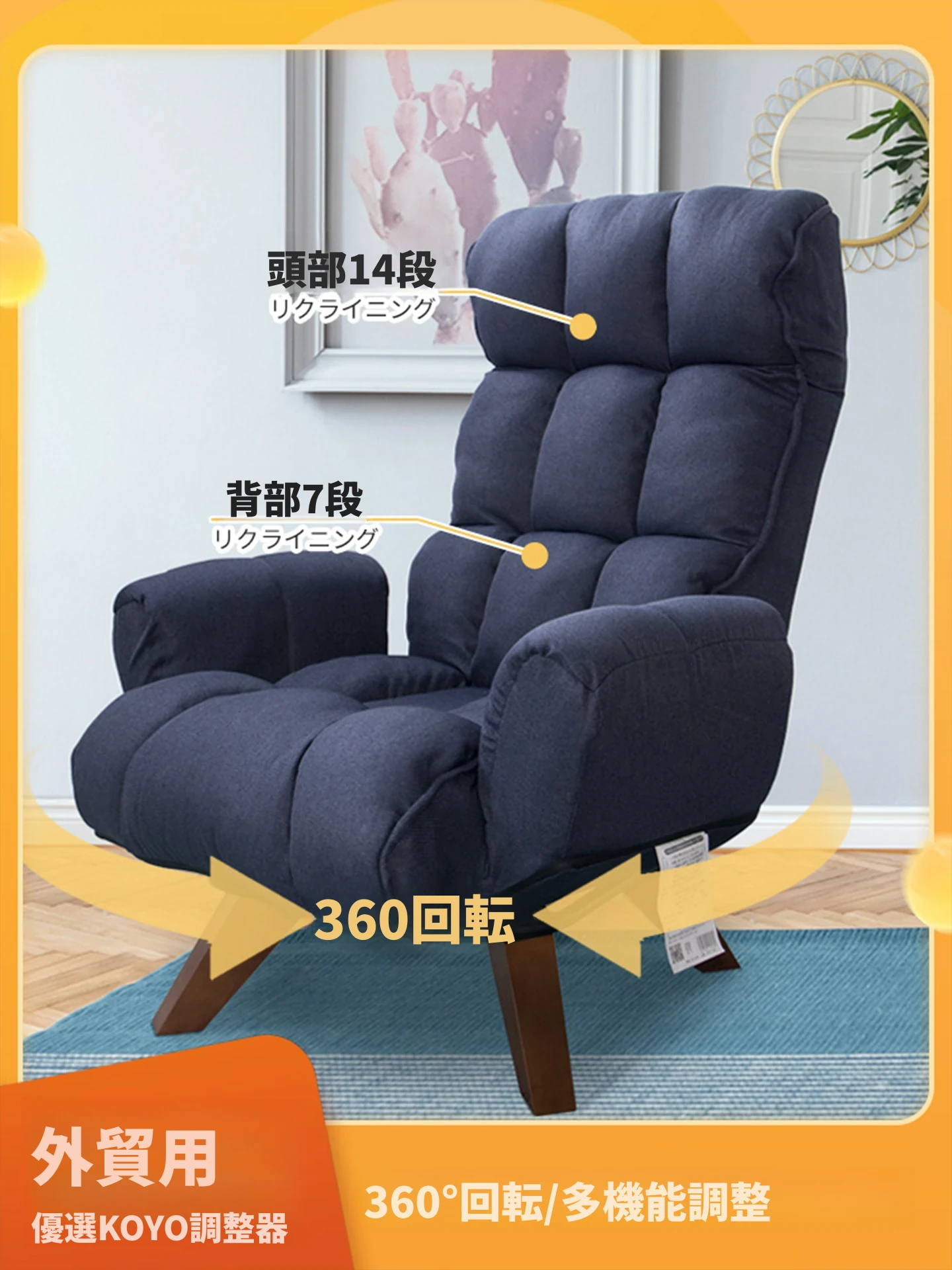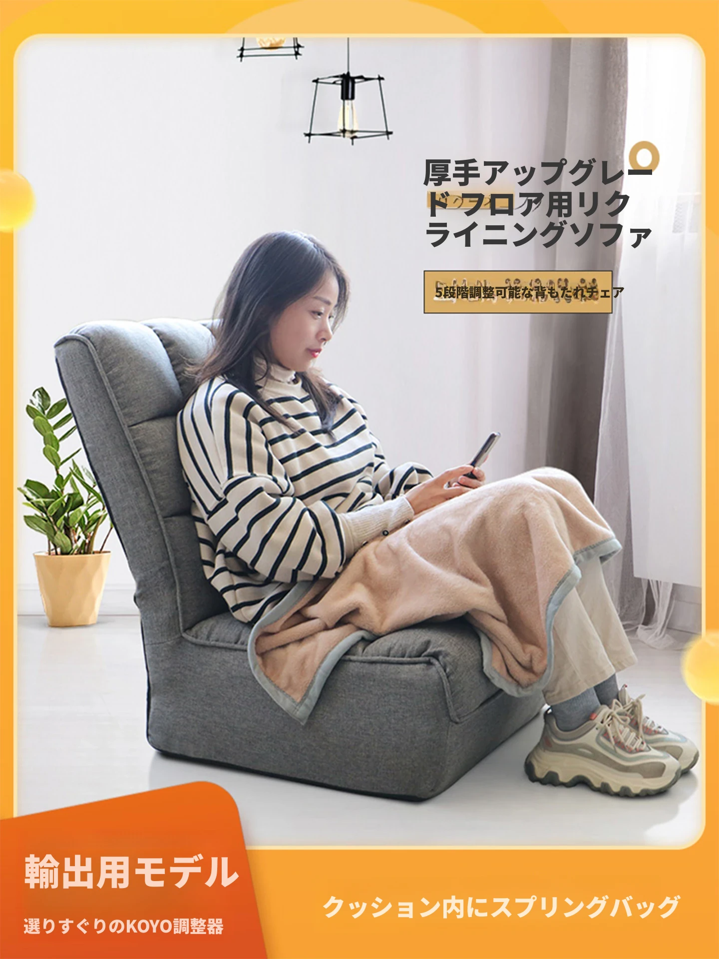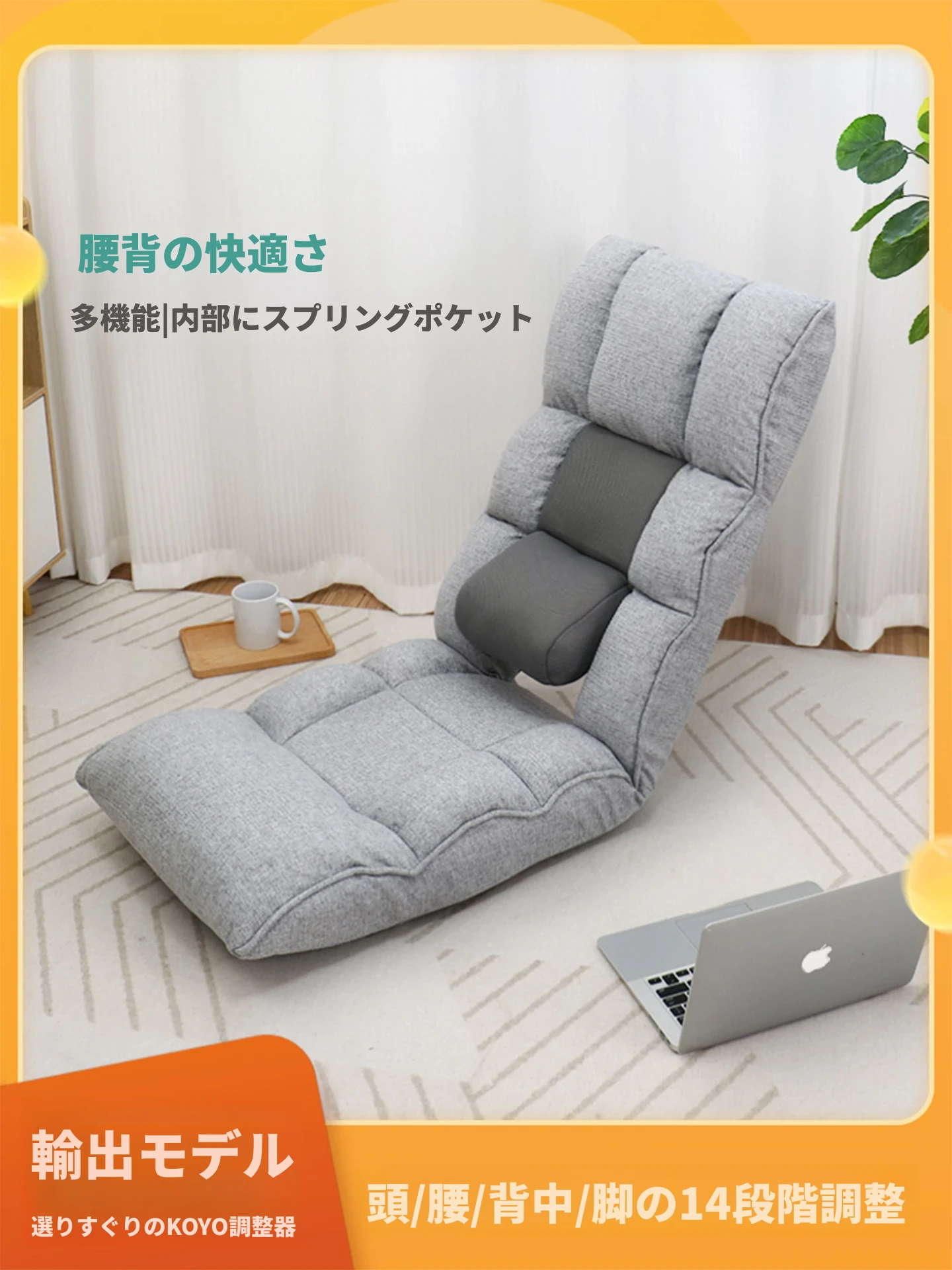スタイリッシュな和風リクライニングチェア - スマホやゲームを楽しむための快適な座椅子!ベッドや窓辺、地面にぴったりフィットするリラックス空間を提供します。あなたのくつろぎタイムをもっと特別に!
