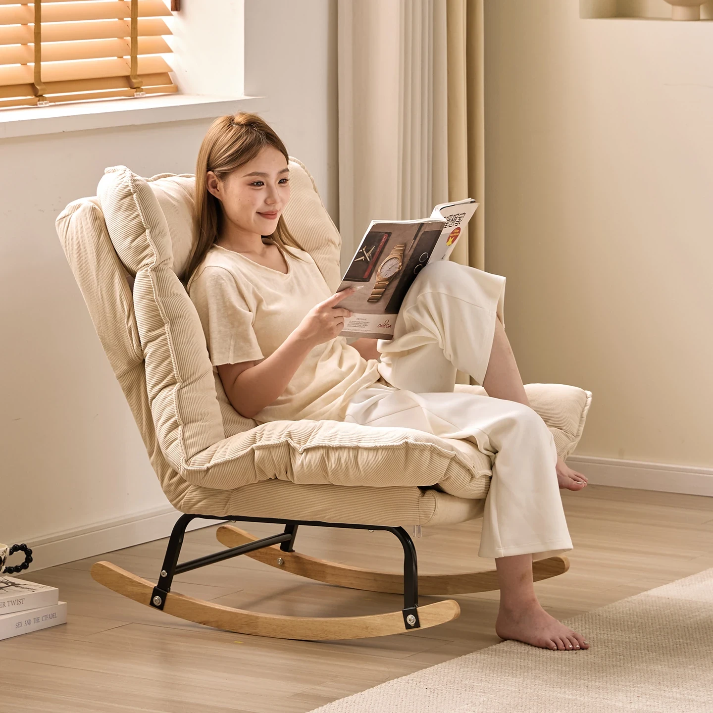 2025年新作!リラックスできる大人用ロッキングチェア - 家庭用、バルコニーやリビングルームに最適!快適な横になれるソファで、くつろぎの時間をお楽しみください。