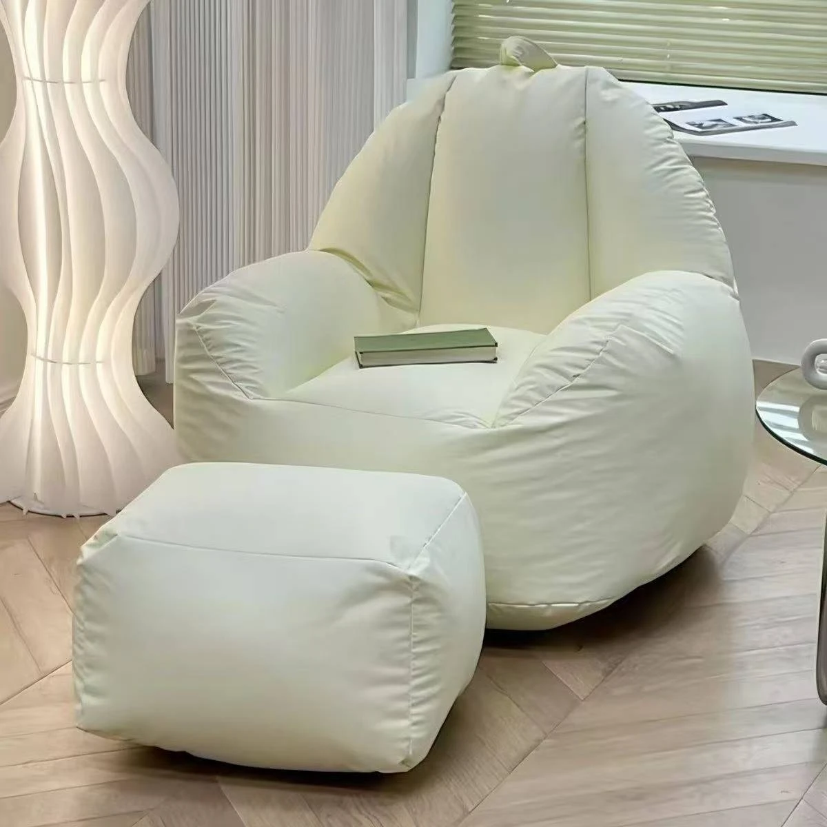 リラックスできる!寝ることもできる懒人ソファー - バルコニーや寝室にぴったりな一人用ソファ。豆袋デザインで快適な座り心地を実現。リビングにも最適な背もたれ付きのリクライニングチェア!