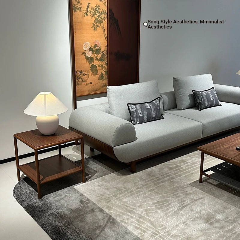 2025 New Arrival: Song Aesthetic Modern Sofa in North American Walnut - Luxury Light Design for Spacious Living Rooms