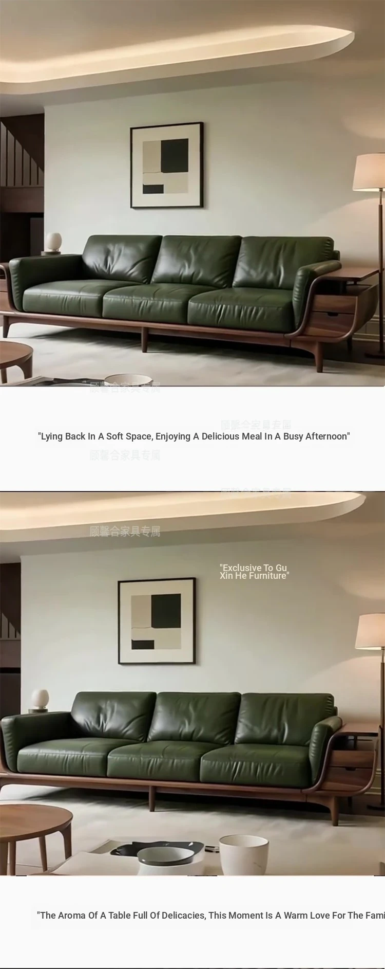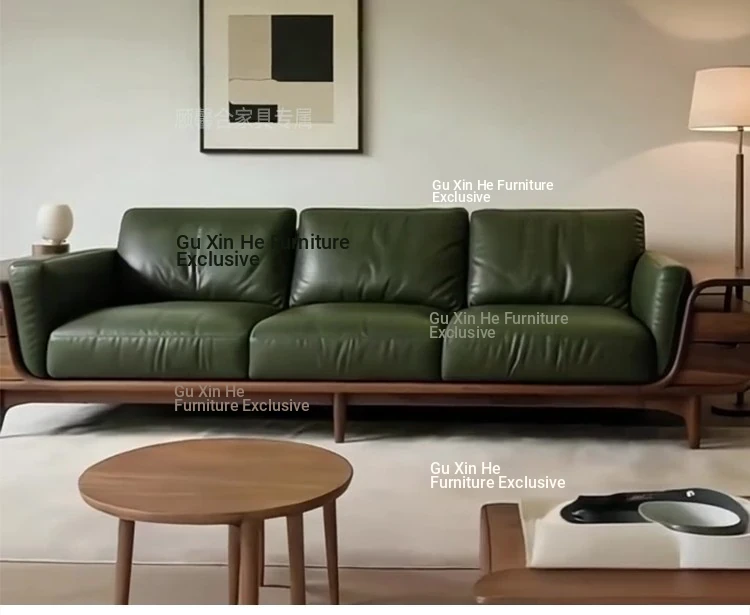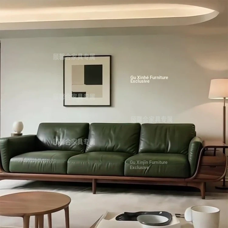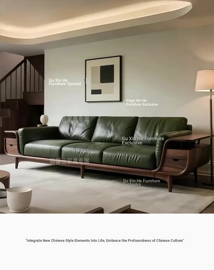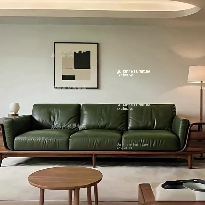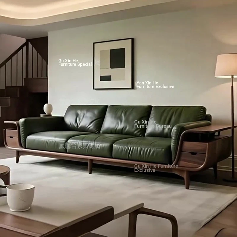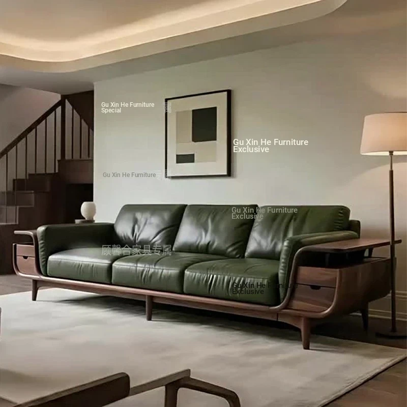 2025 New Luxury Solid Wood Sofa with North American Black Walnut - Elegant Song Style Leather Sofa for High-End Villas and Living Rooms