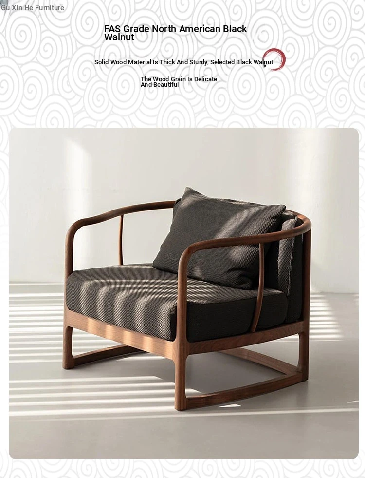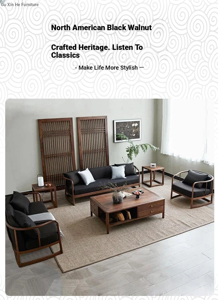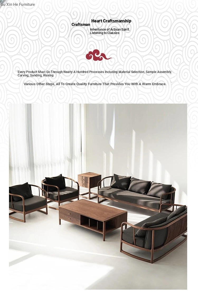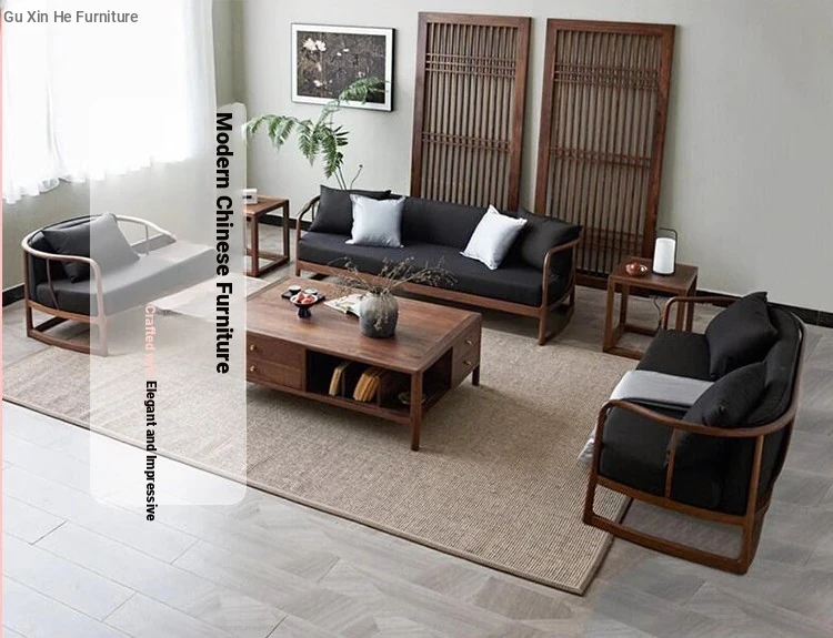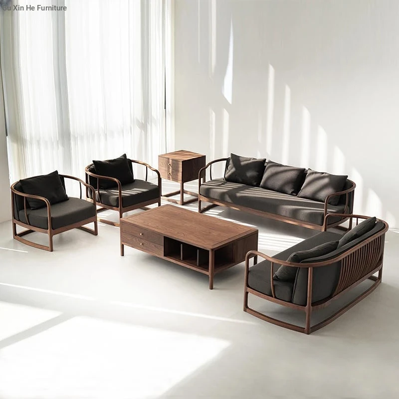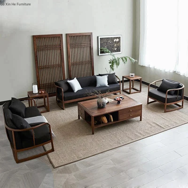 2025 New Modern Zen Style Solid Wood Sofa for Living Room - North American Black Walnut Designer Edition, Straight-Line Design, Perfect for Contemporary Homes