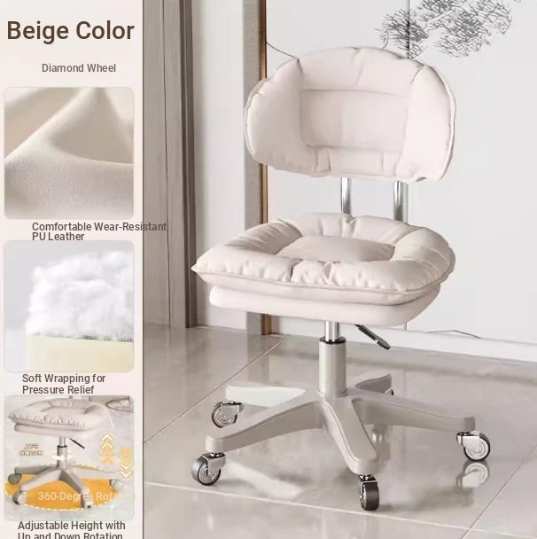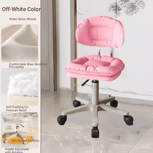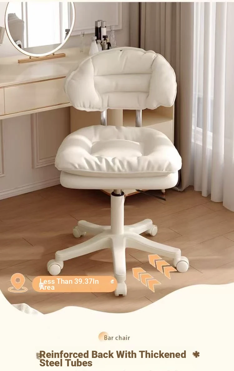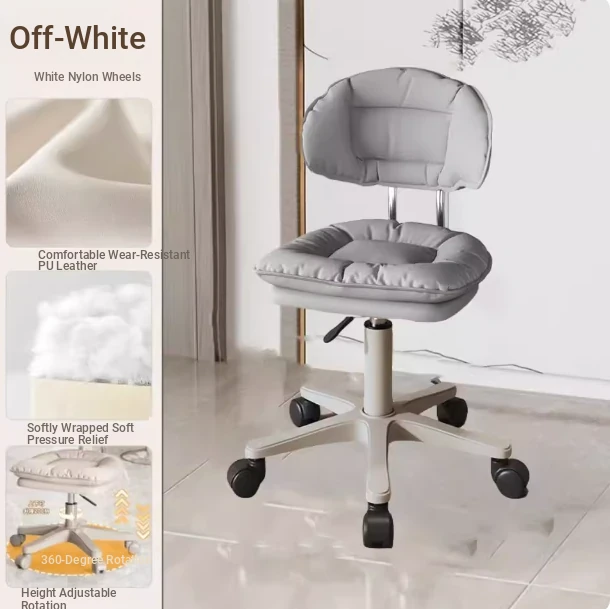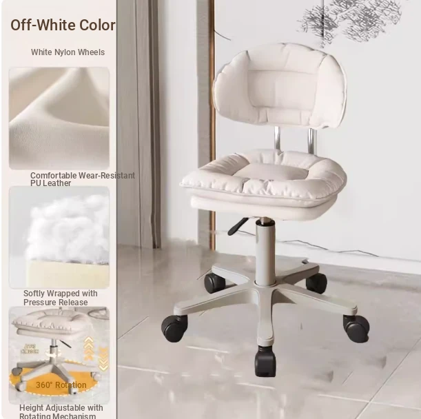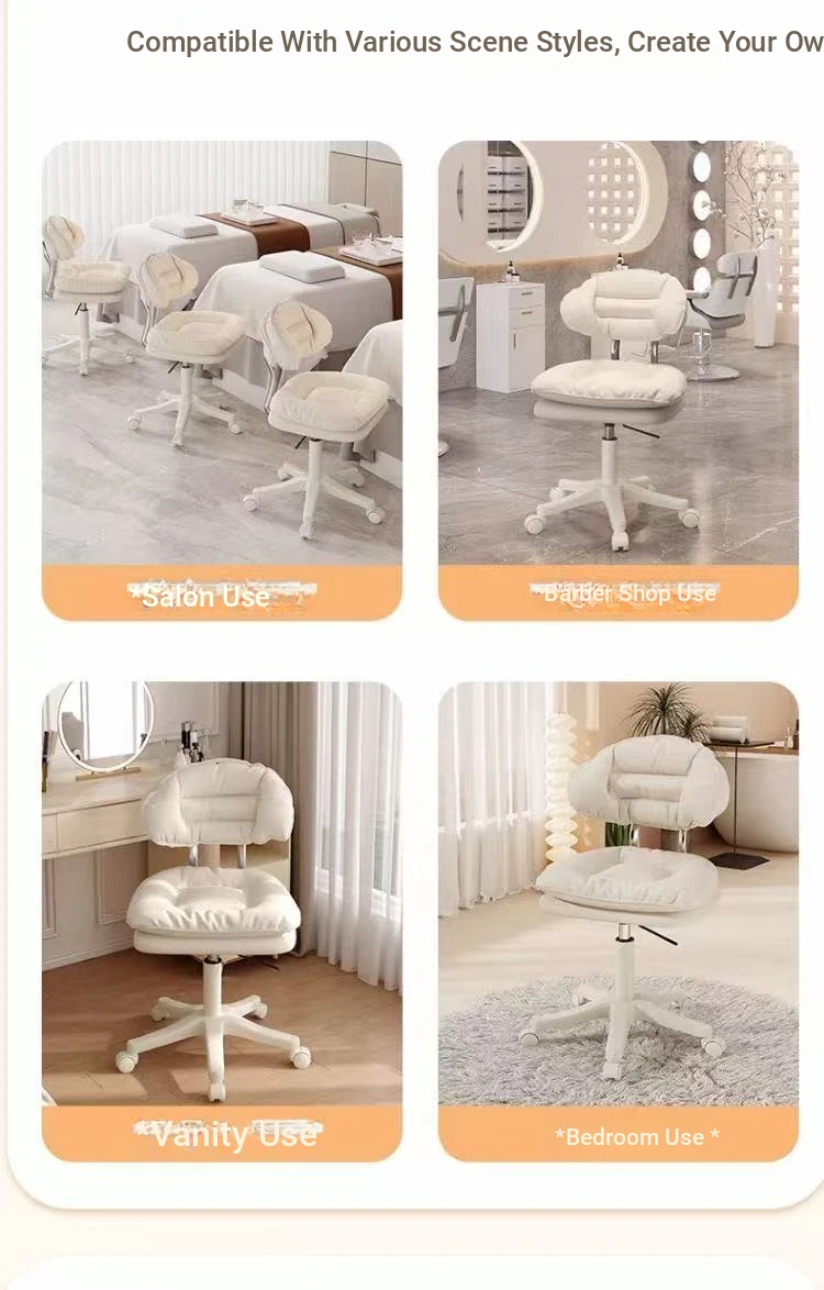 Adjustable Makeup Chair for Vanities - Modern Swivel Stool with Backrest and Wheels, Perfect for Bedrooms and Beauty Salons, Stylish and Functional Design