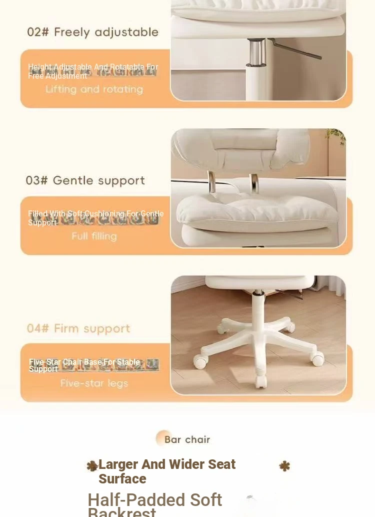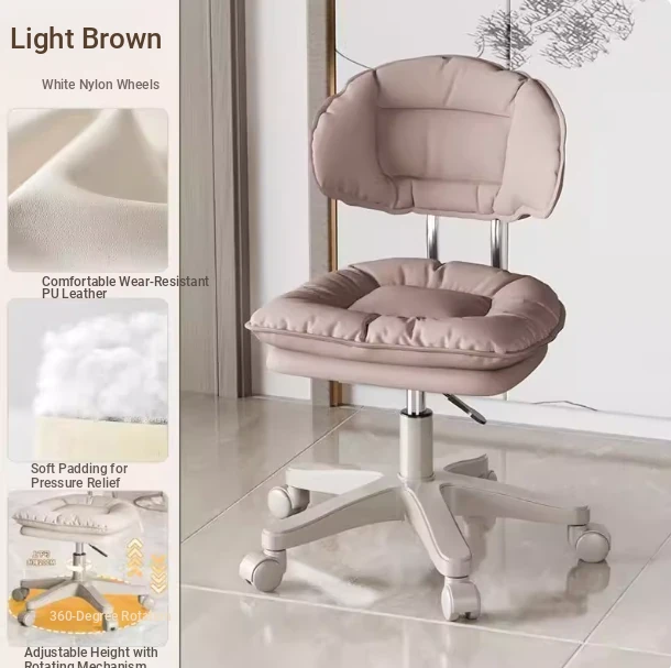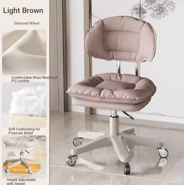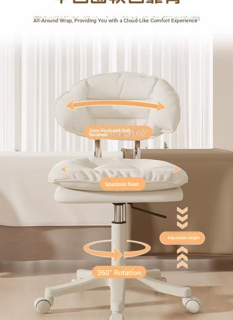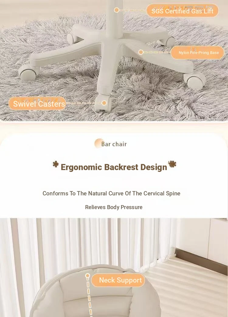 Adjustable Makeup Chair for Vanities - Modern Swivel Stool with Backrest and Wheels, Perfect for Bedrooms and Beauty Salons, Stylish and Functional Design