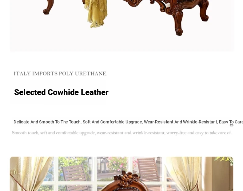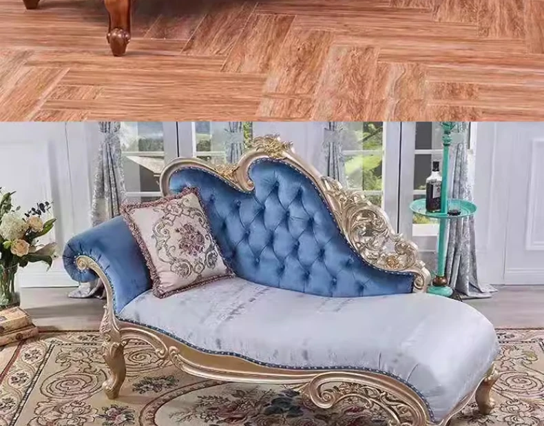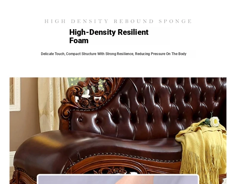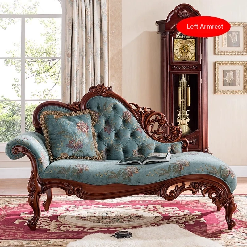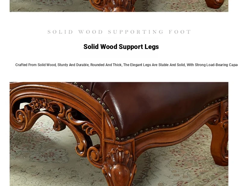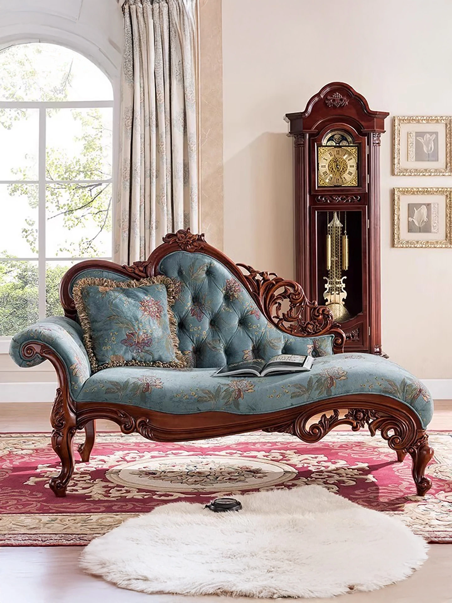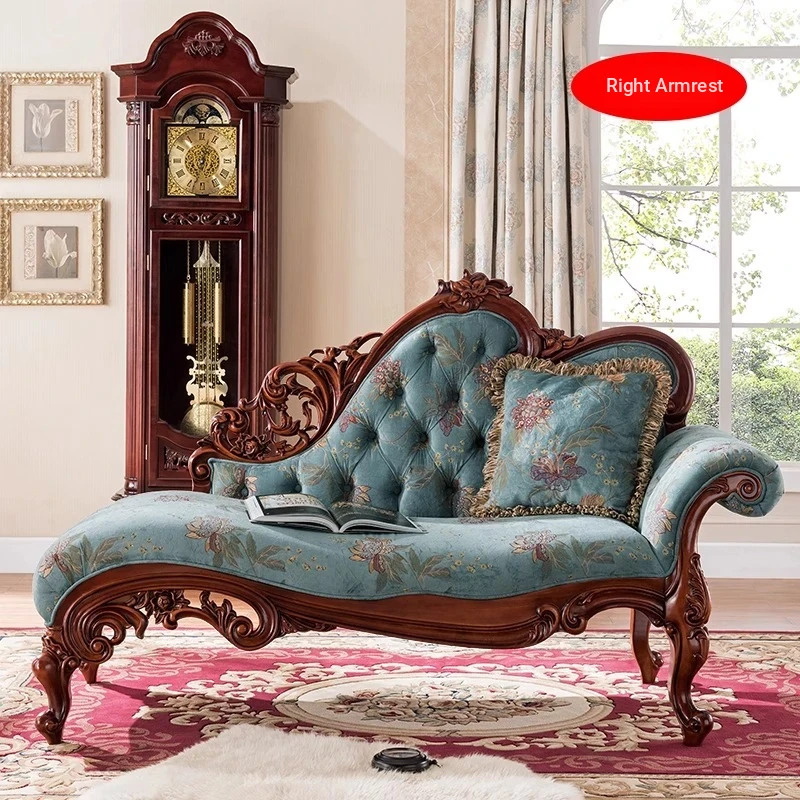 American Style Solid Wood Carved Genuine Leather Chaise Lounge - Elegant European Design for Home and Hotel, Perfect for Living Room Relaxation and Comfort