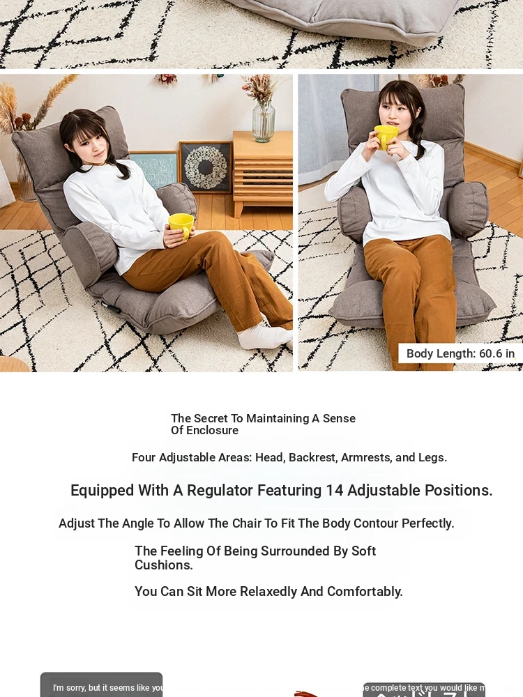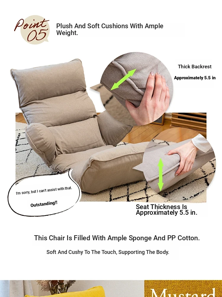 Cozy Armrest Reclining Sofa Chair - Perfect for Bedrooms, Floor, or Bay Windows. Ideal for Reading and Relaxing, this Single Seater Tatami Couch Combines Comfort and Style!
