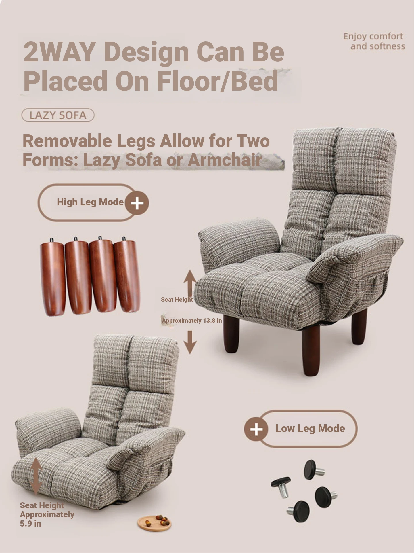 Cozy Folding Recliner Chair - Perfect for Home, Balcony, Living Room & Bedroom - Comfortable Lazy Sofa for Seniors - Stylish Single Lounge Chair for Ultimate Relaxation