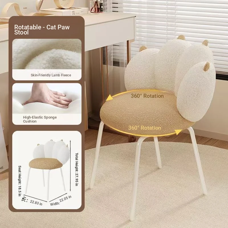 Creamy Velvet Lounge Chair with Rotating and Adjustable Design - Perfect for Small Spaces, Bedrooms, and Home Offices - Chic and Luxurious Vanity Desk Chair