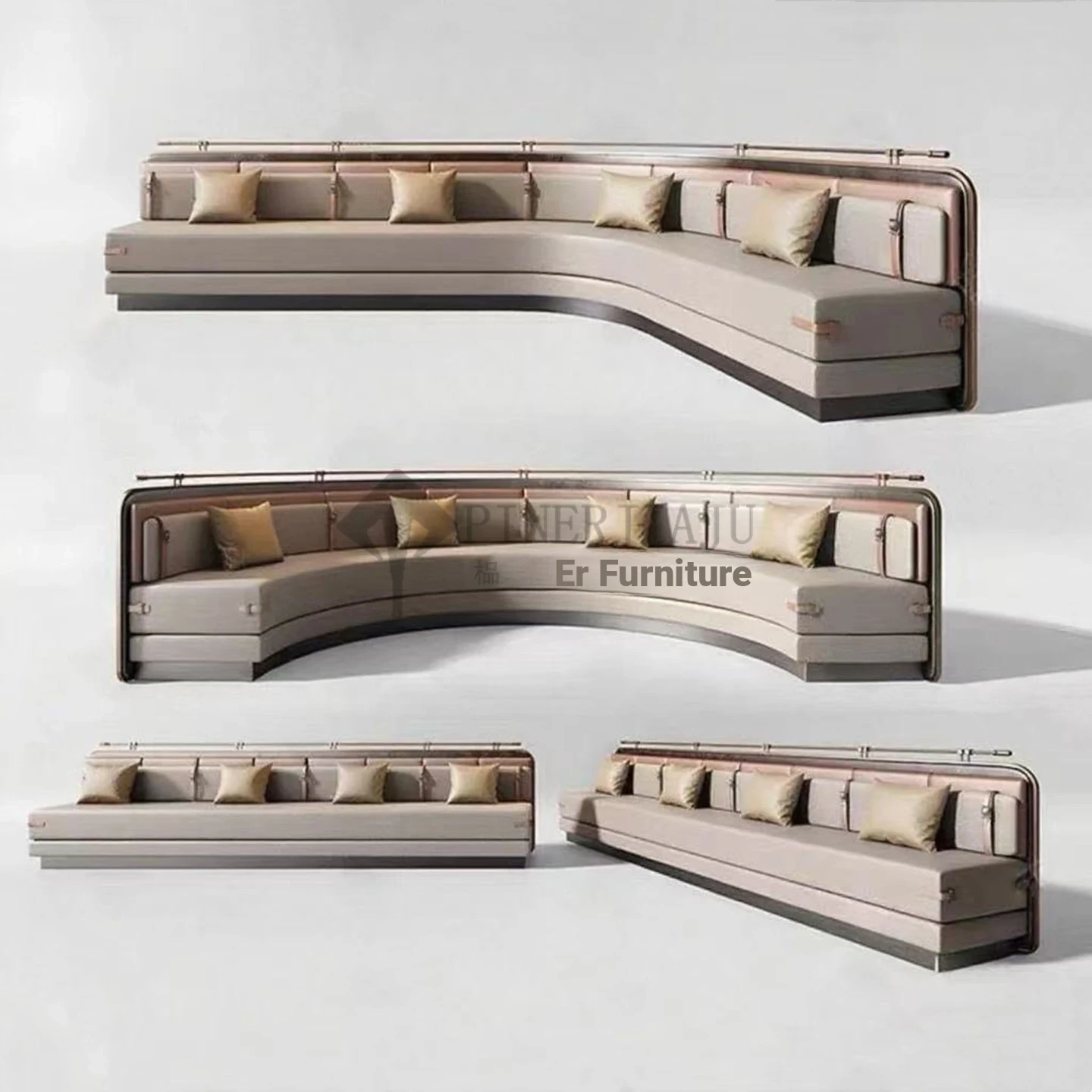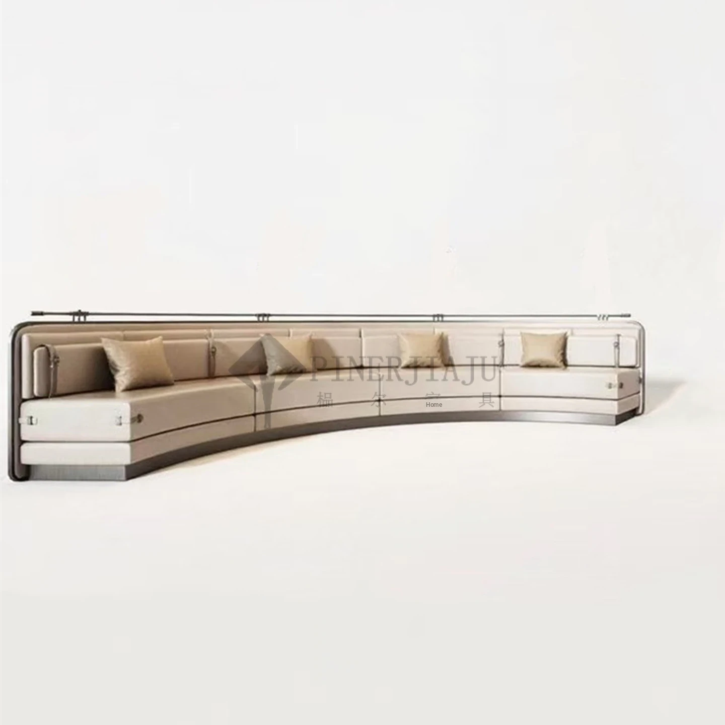 Designer Minimalist Curved Sofa for Hotel Lobby and Sales Office - Elegant Fabric Upholstered Seating for Shopping Mall Lounge Areas and Meeting Spaces
