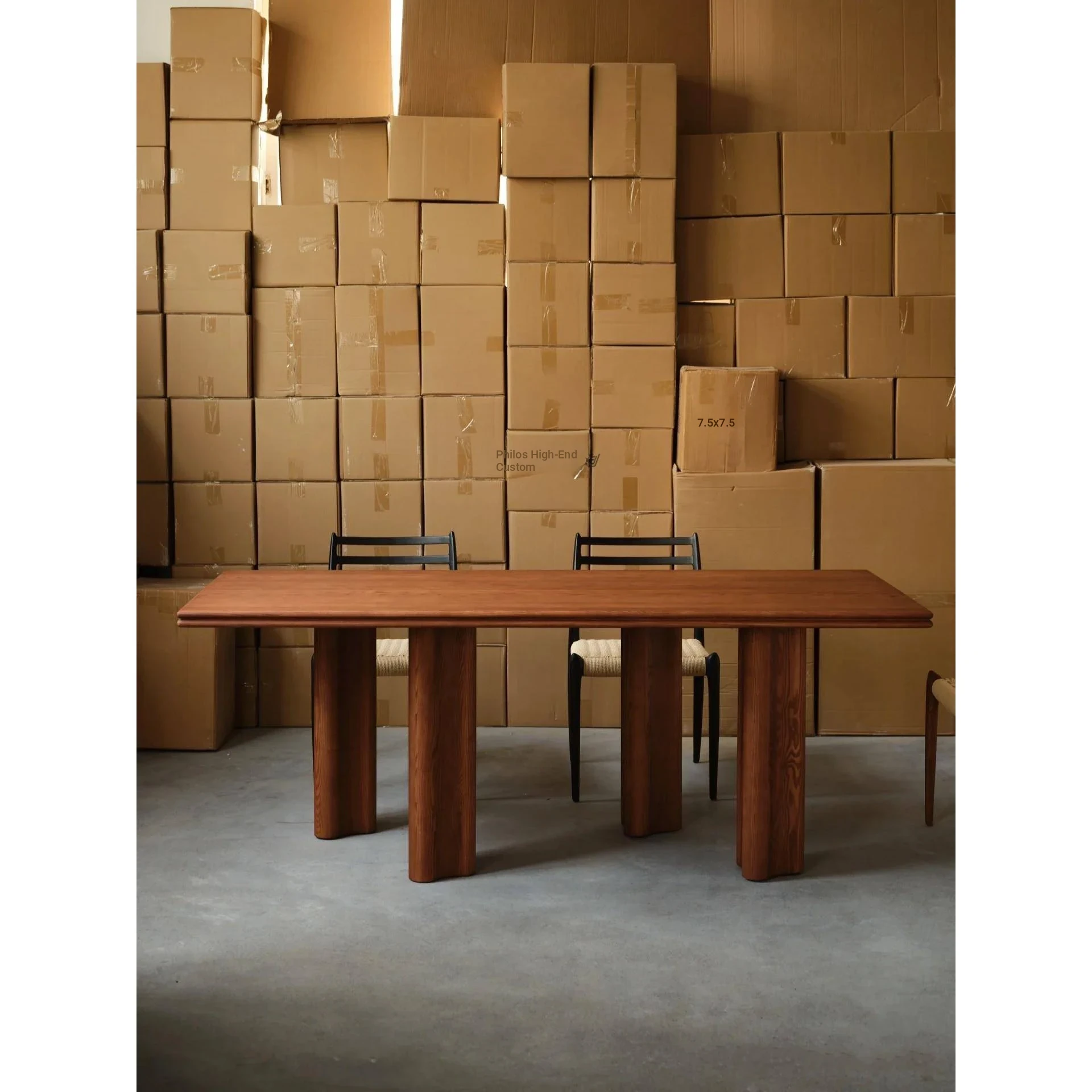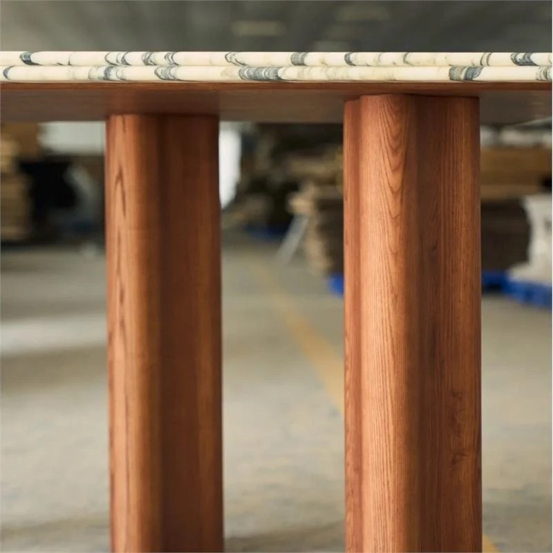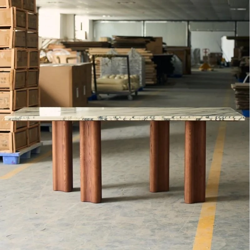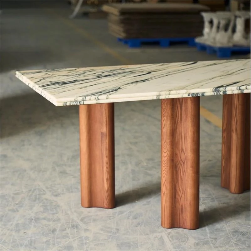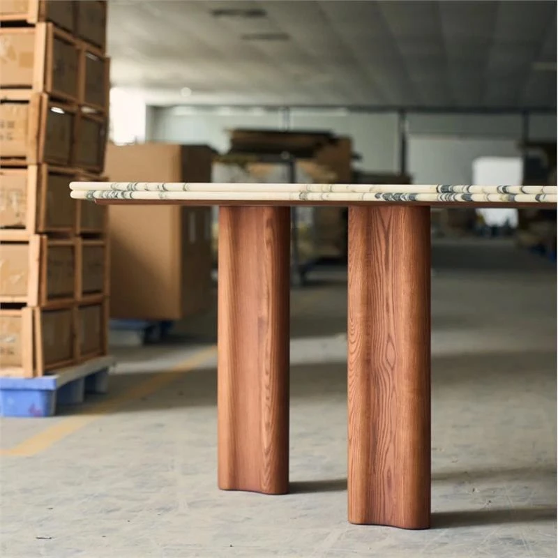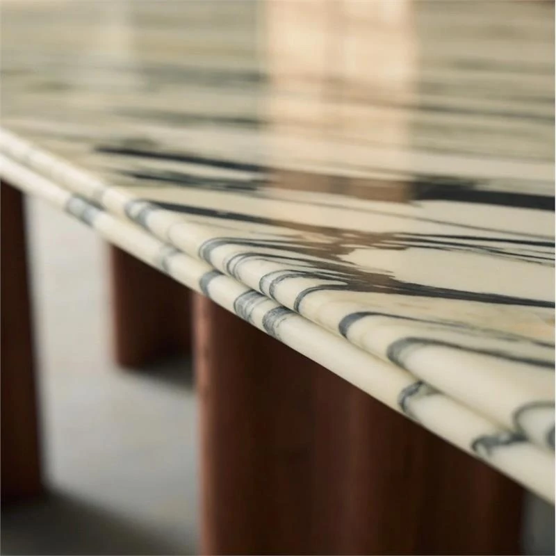 Designer Retro Marble Rectangular Dining Table - Premium Quality Rock Plate for Home Use, Solid Wood Wabi-Sabi Style Dining Table