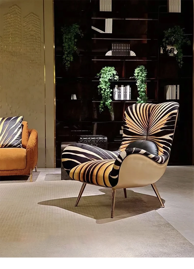 Designer Single Luxury Sofa Chair - Retro Tiger Chair for Living Room, Villa, and Lounge - Perfect for Reception Areas and Stylish Decor