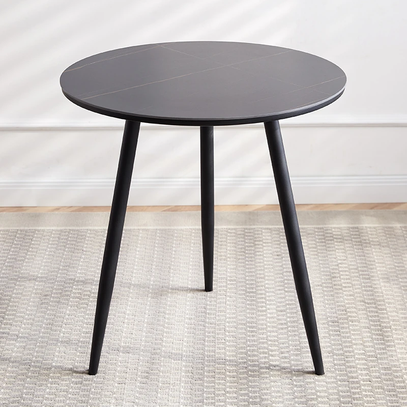 Black Round Table 27.56in (Steel Leg)-Slab Surface