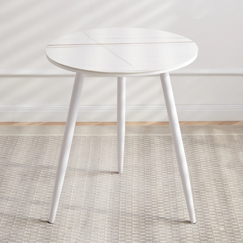 Thickened anti-scratch white face black leg Round Table 27.56in (steel leg)
