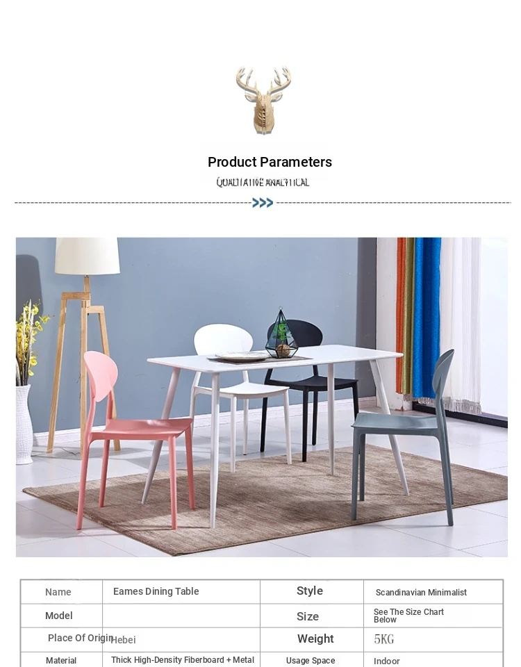 Eames Style Casual Round Table Set - Minimalist Reception & Meeting Table and Chair Combo for Milk Tea Shops, Small Square and Rectangular Guest Tables