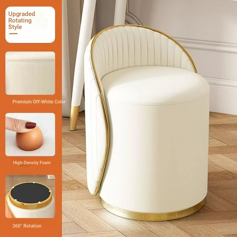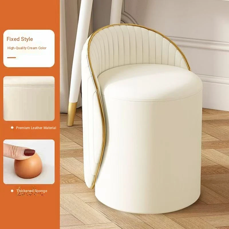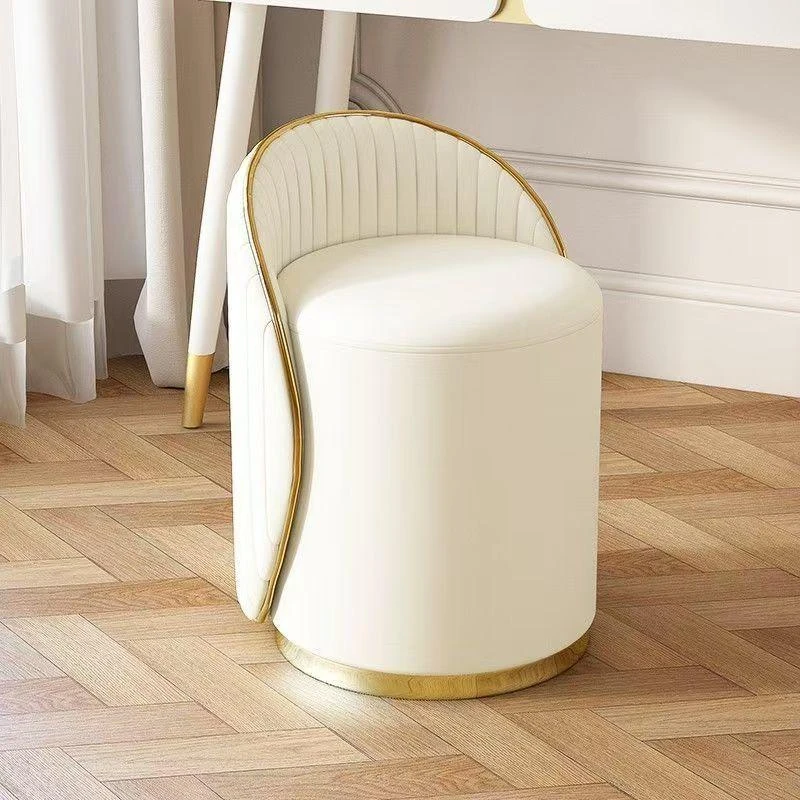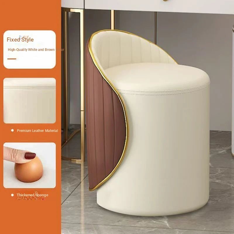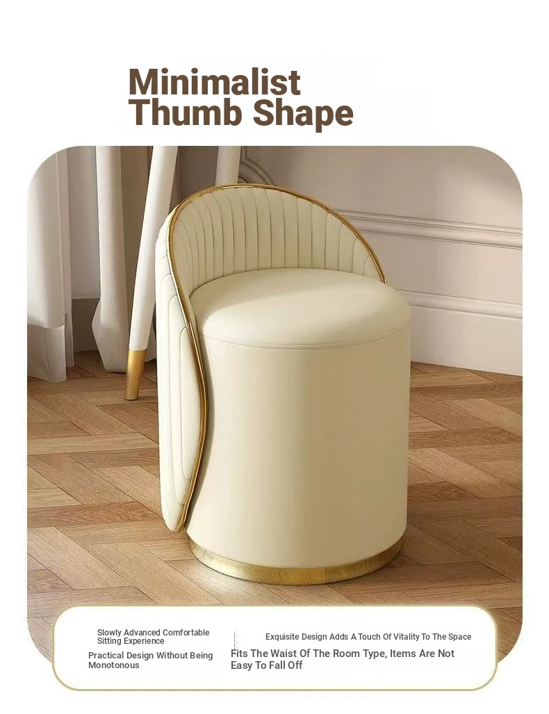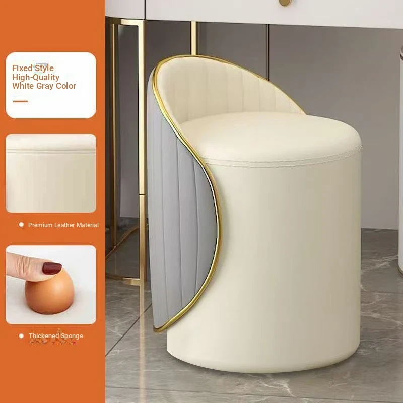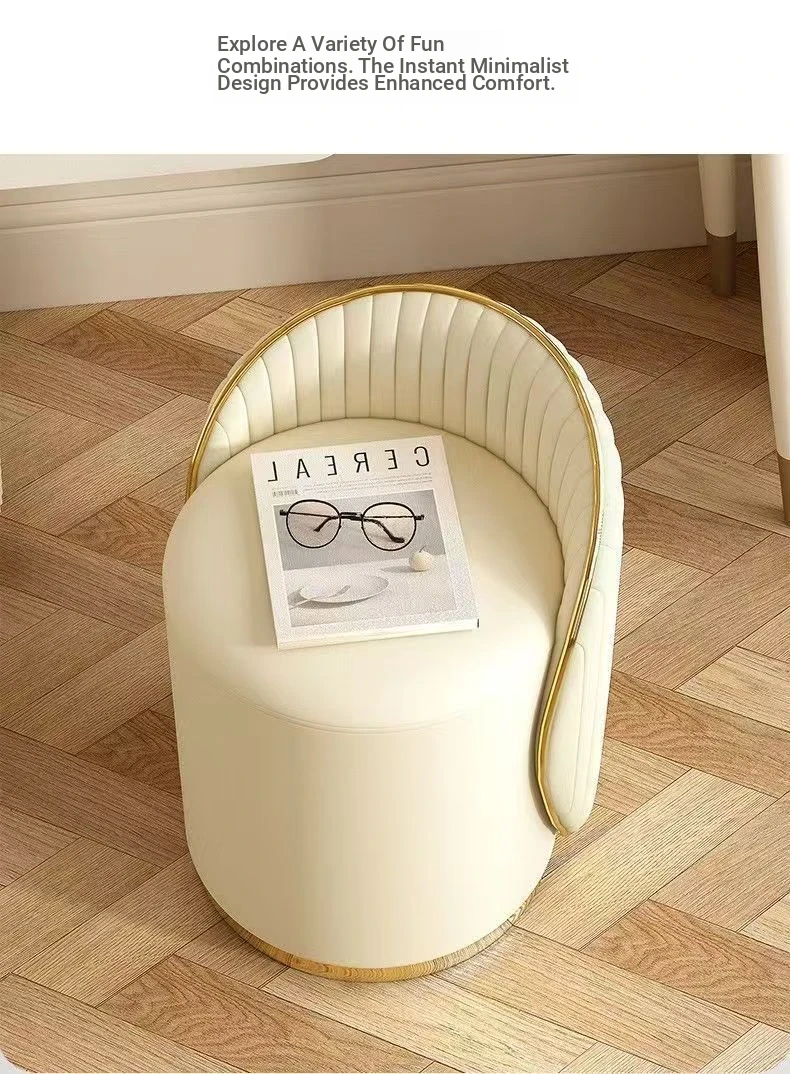 Elegant Compact Vanity Stool - Minimalist Round Chair for Small Spaces, Nordic Style with Backrest, Perfect for Bedrooms and Makeup Use, Trendy Design for Modern Women