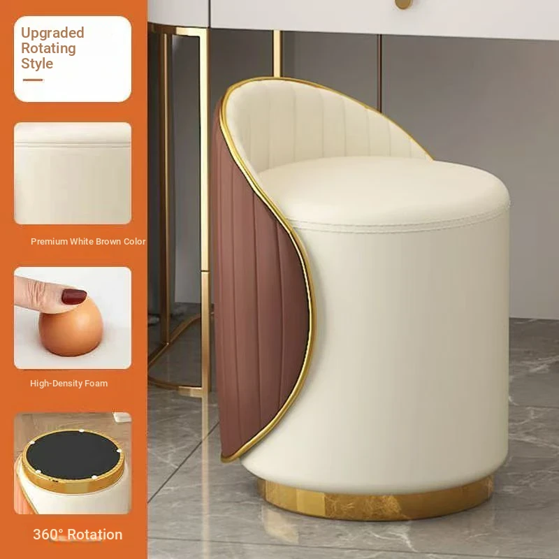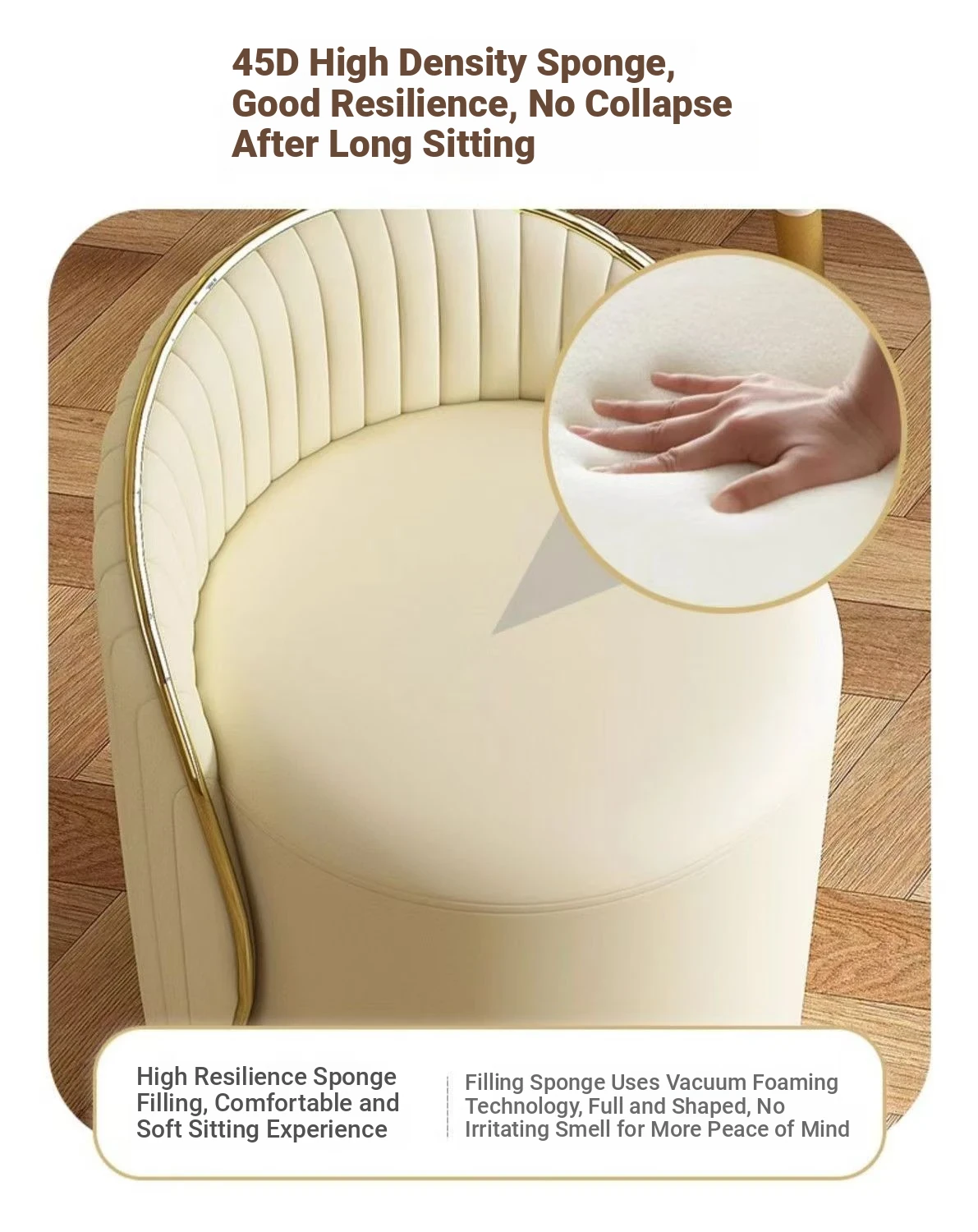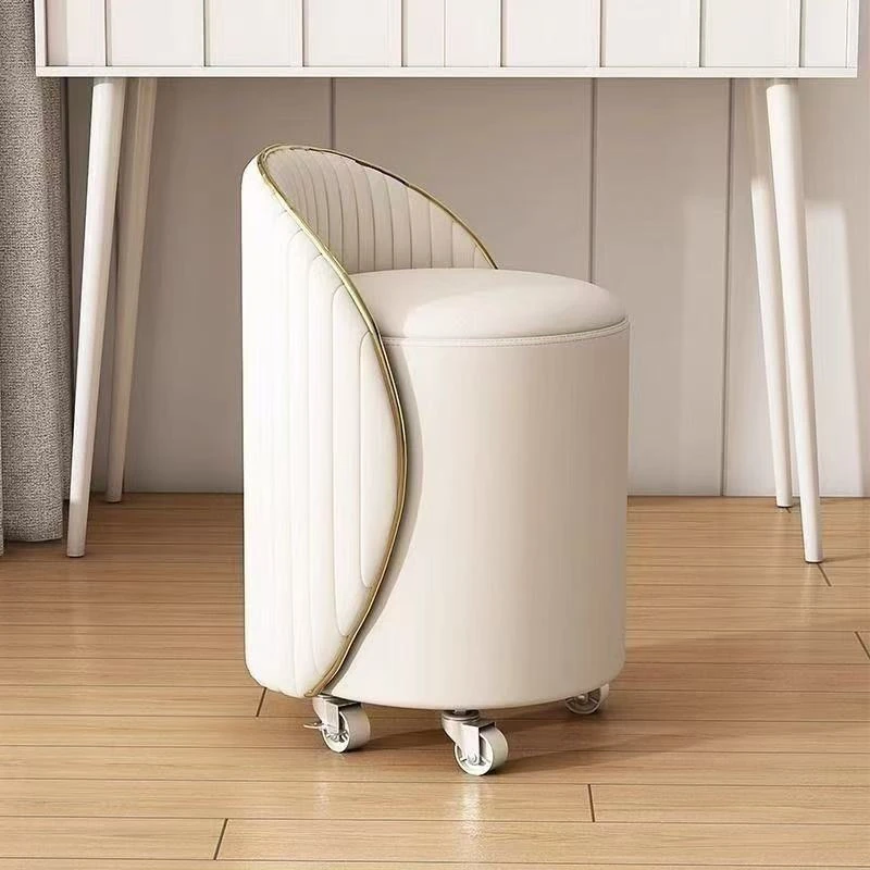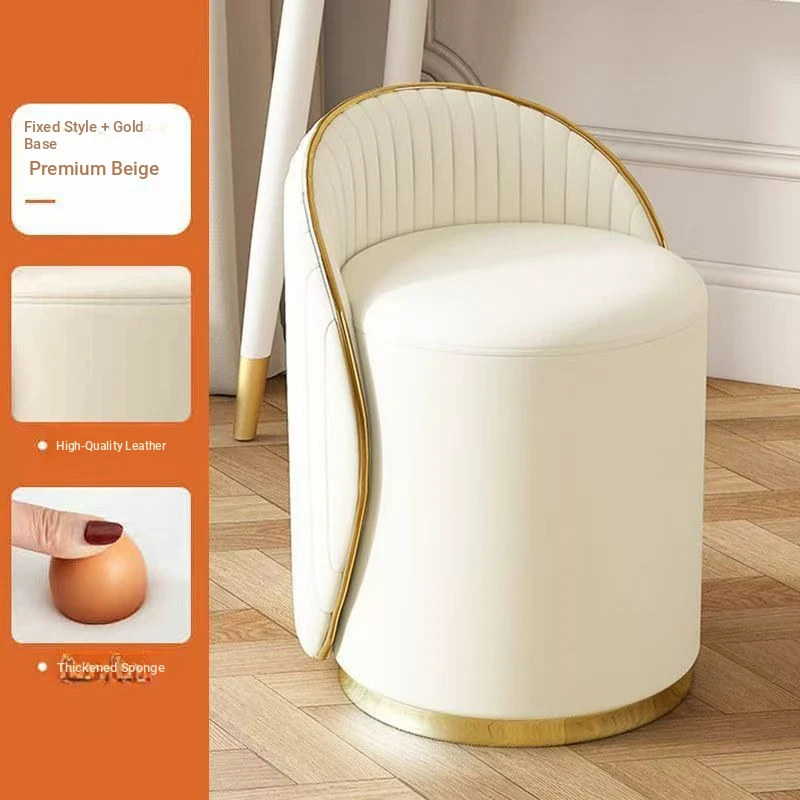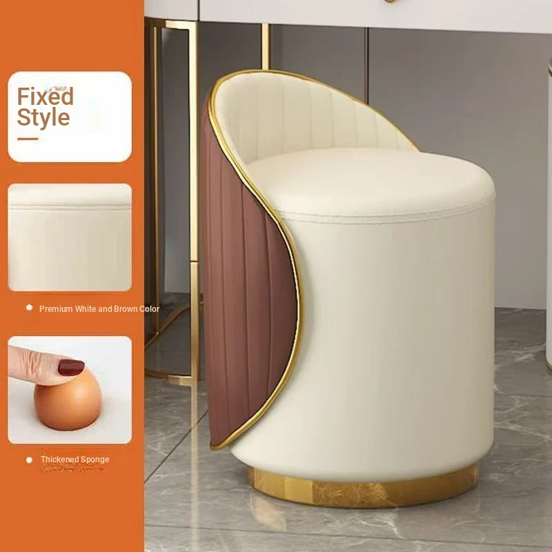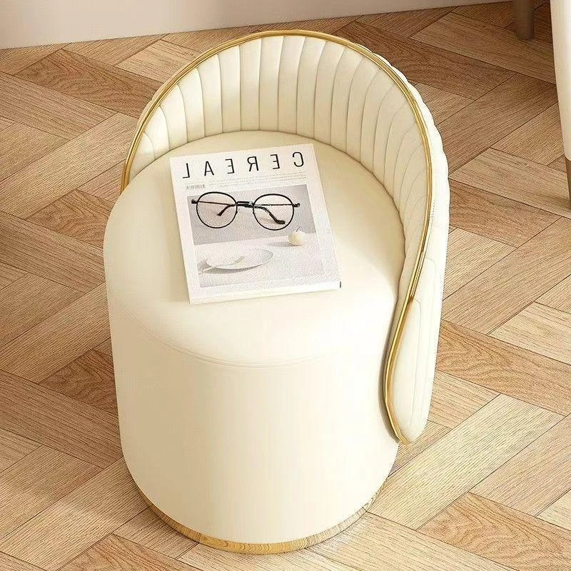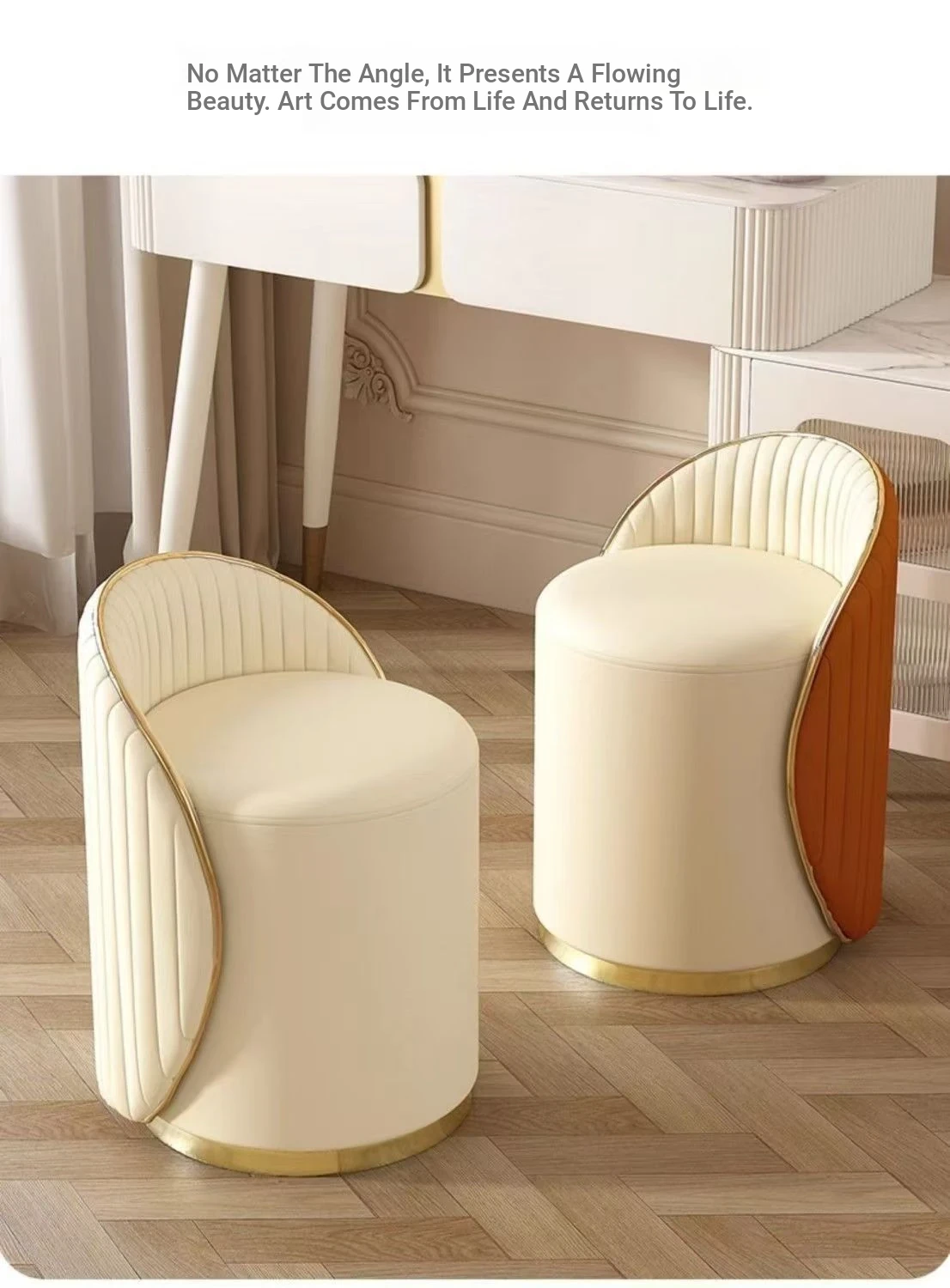 Elegant Compact Vanity Stool - Minimalist Round Chair for Small Spaces, Nordic Style with Backrest, Perfect for Bedrooms and Makeup Use, Trendy Design for Modern Women