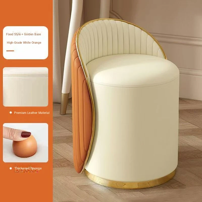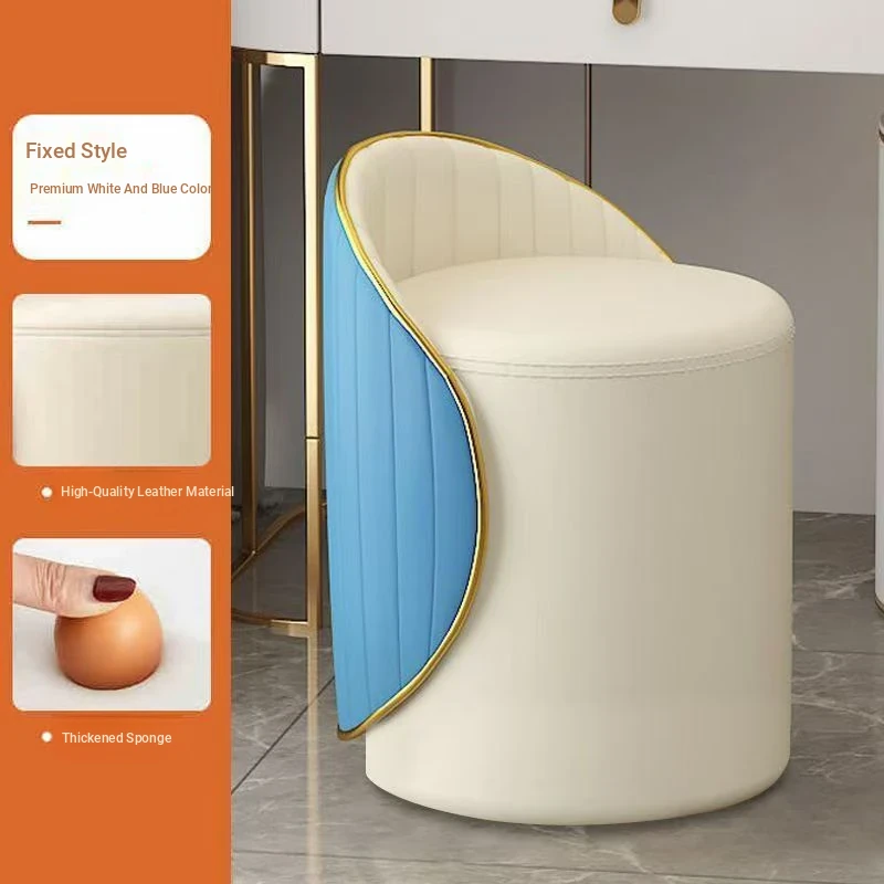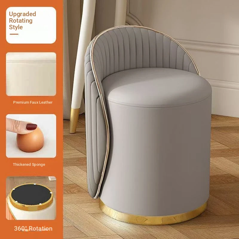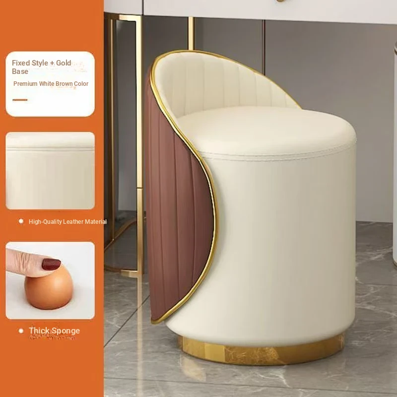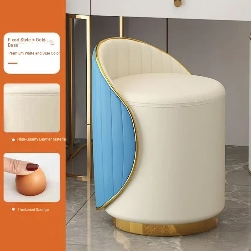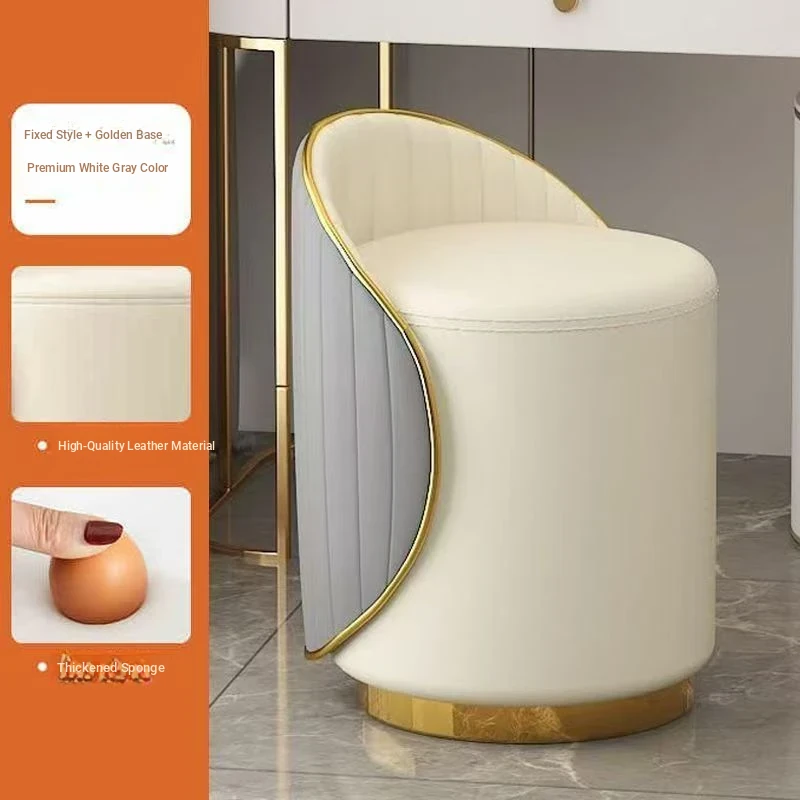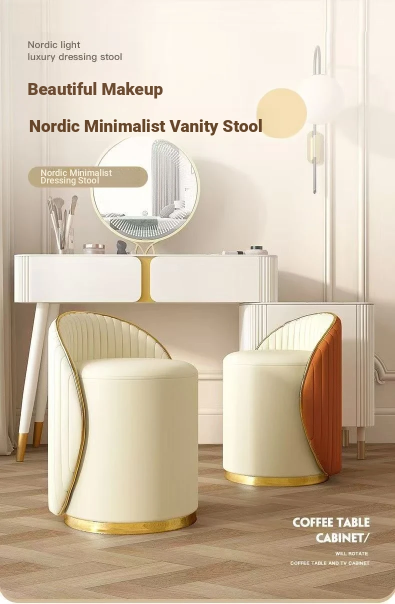 Elegant Compact Vanity Stool - Minimalist Round Chair for Small Spaces, Nordic Style with Backrest, Perfect for Bedrooms and Makeup Use, Trendy Design for Modern Women
