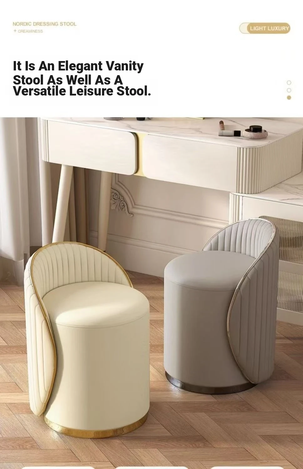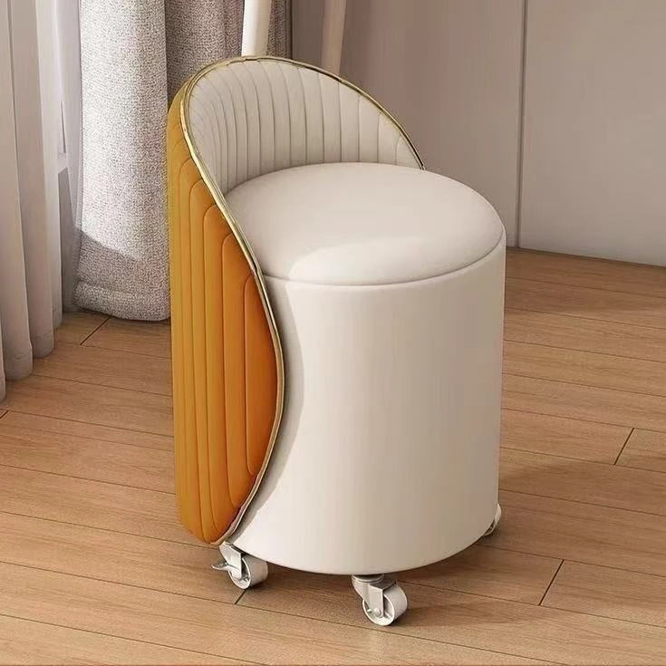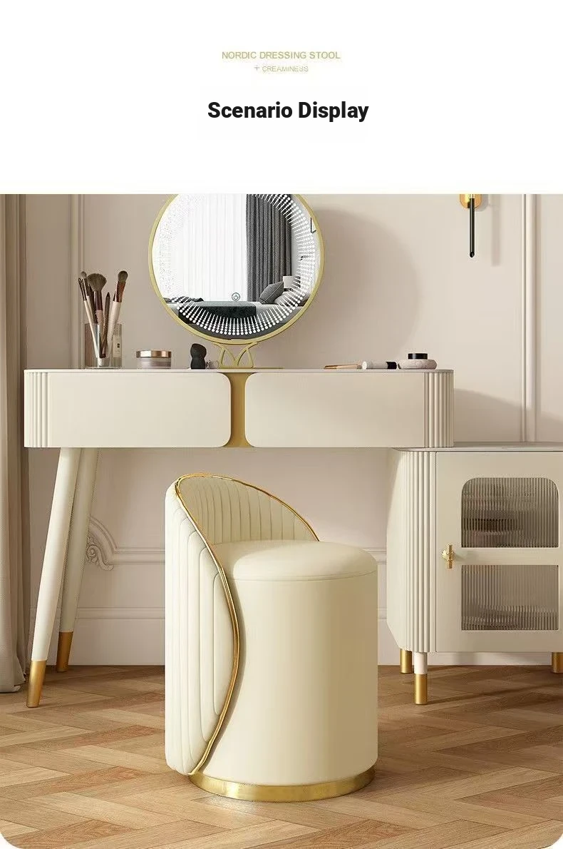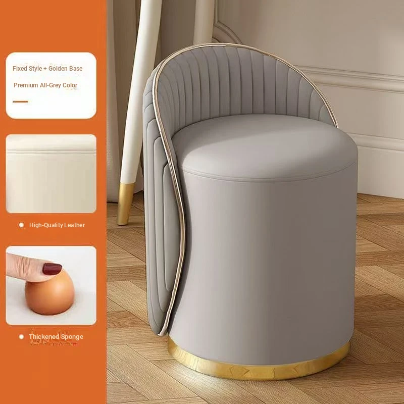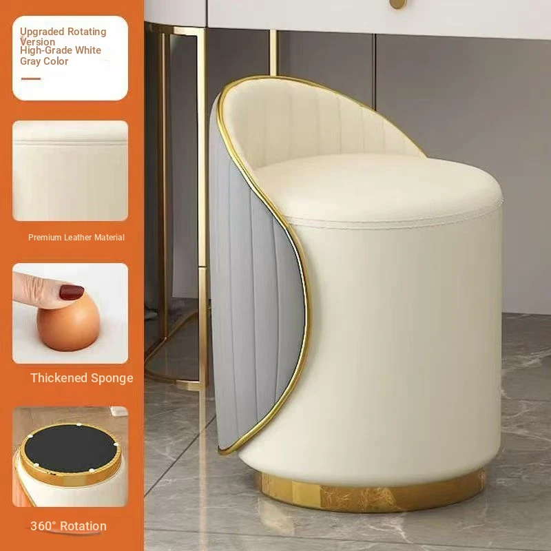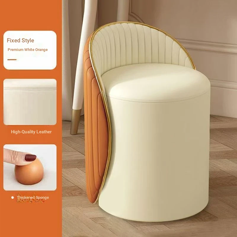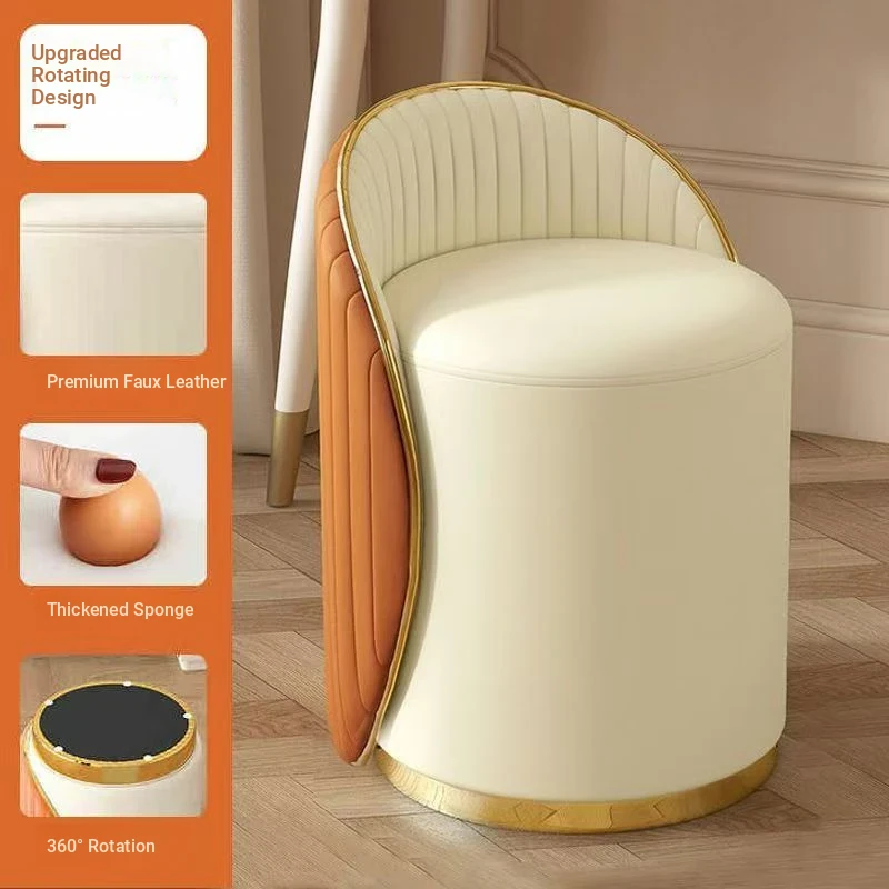 Elegant Compact Vanity Stool - Minimalist Round Chair for Small Spaces, Nordic Style with Backrest, Perfect for Bedrooms and Makeup Use, Trendy Design for Modern Women