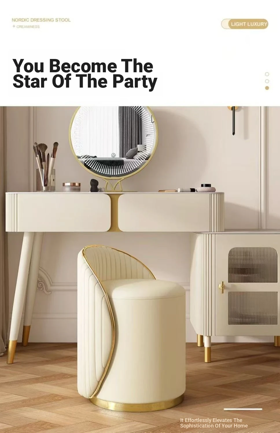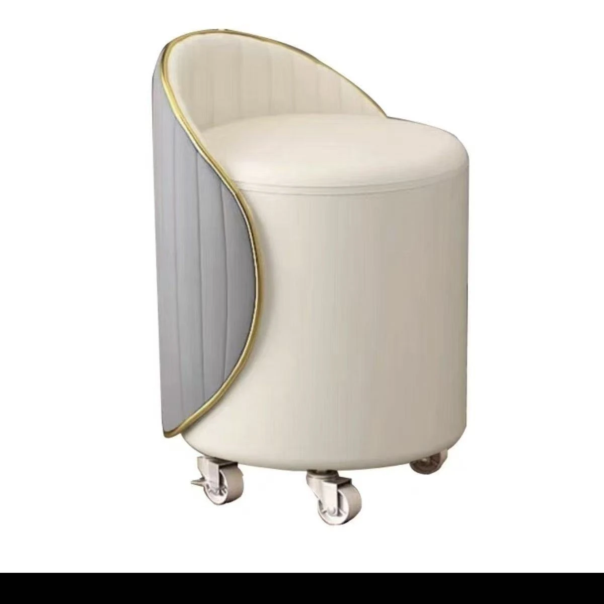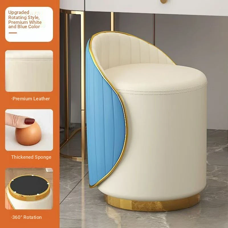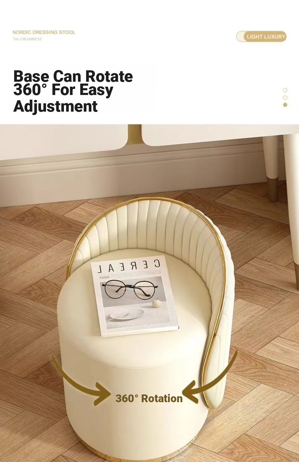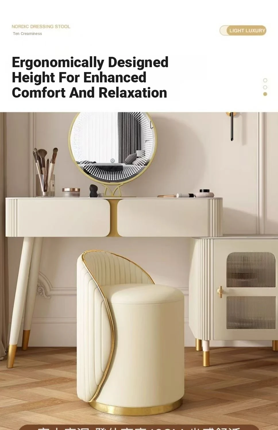 Elegant Compact Vanity Stool - Minimalist Round Chair for Small Spaces, Nordic Style with Backrest, Perfect for Bedrooms and Makeup Use, Trendy Design for Modern Women