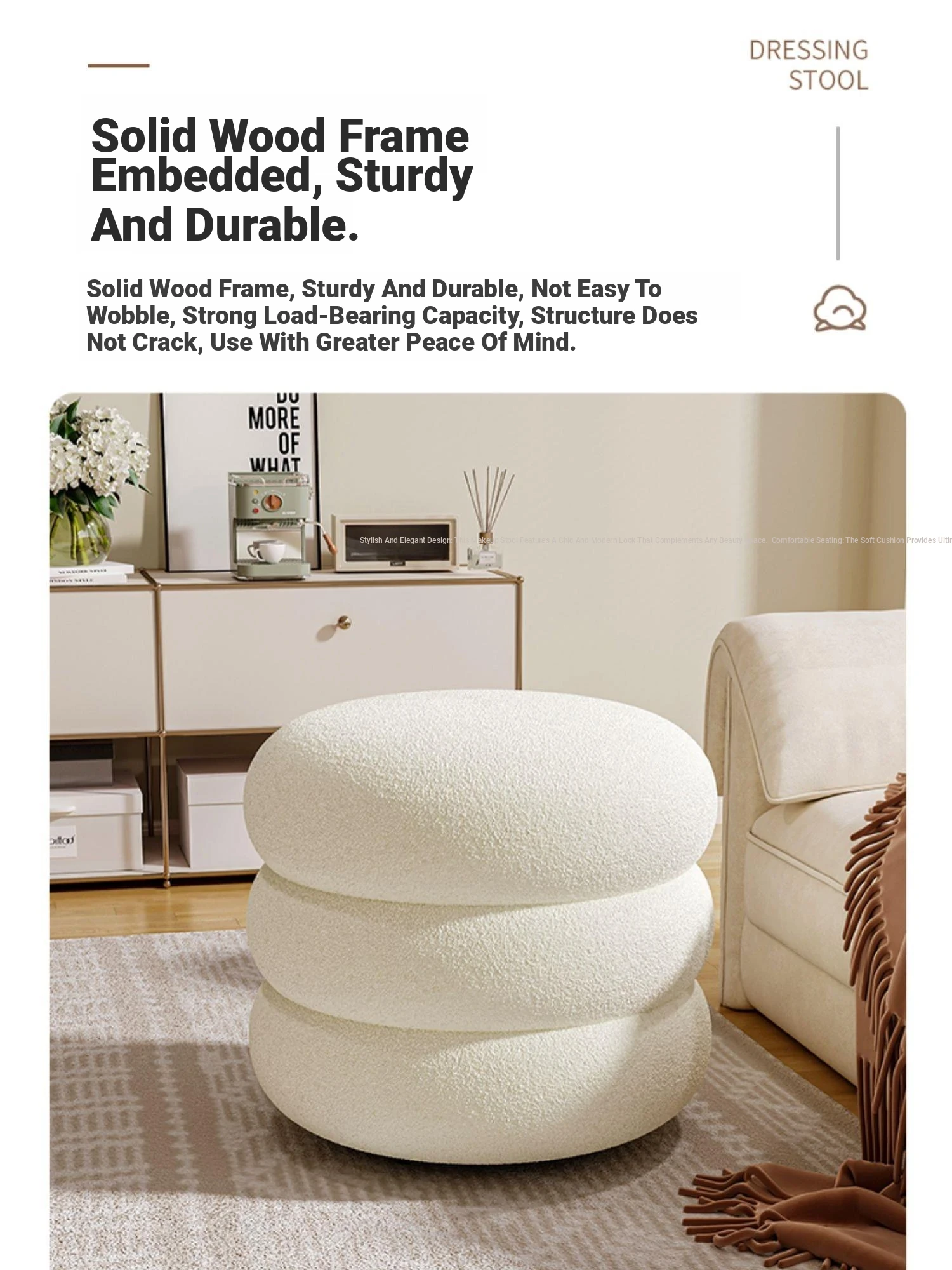 Elegant Makeup Stool for Vanity - Chic and Compact Dressing Chair for Bedrooms, Perfect for Your Makeup Table - Stylish and Luxurious Design