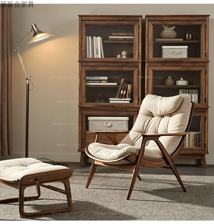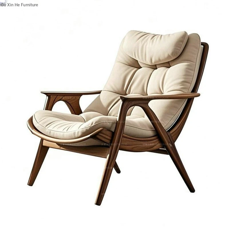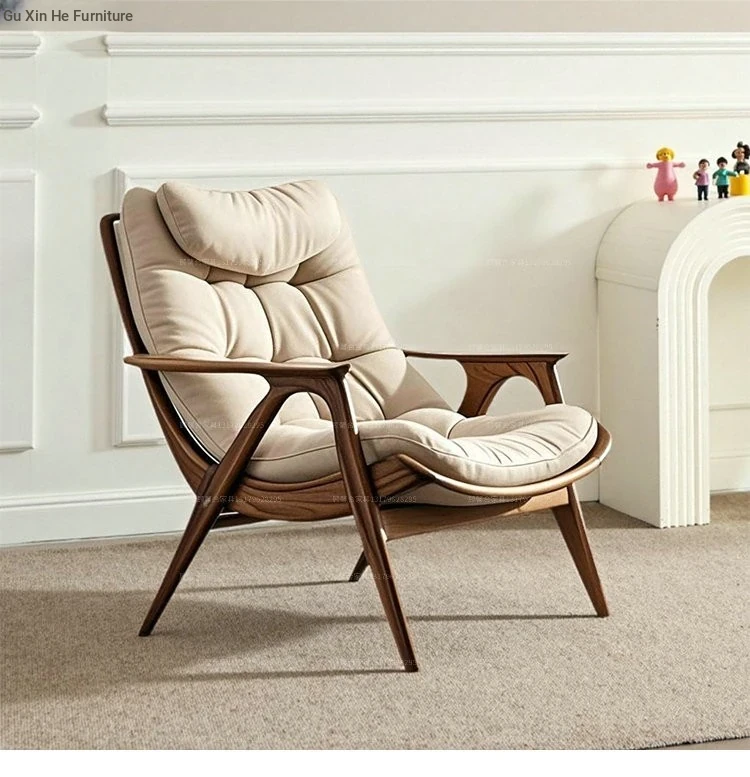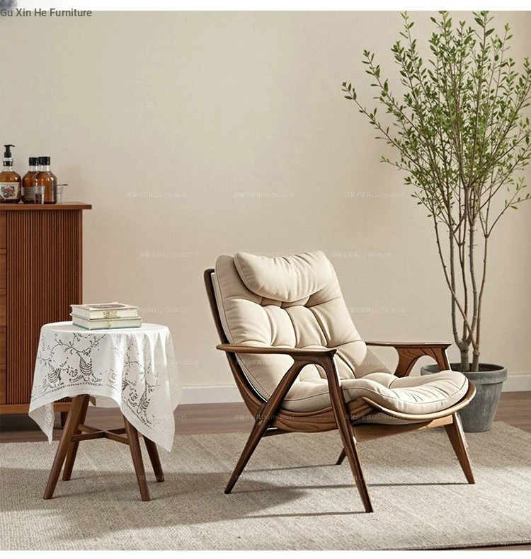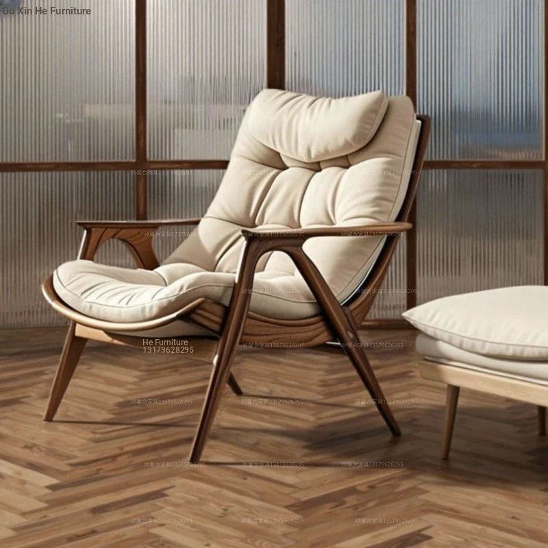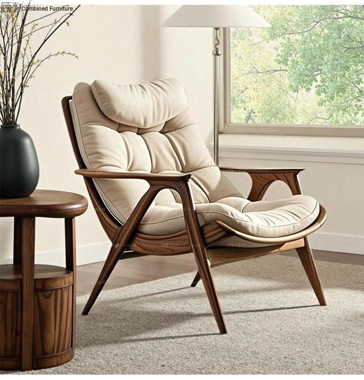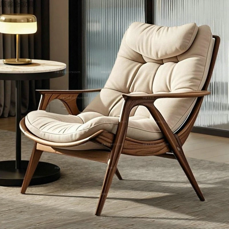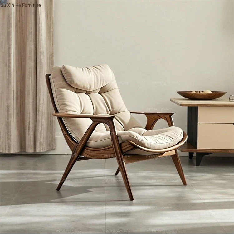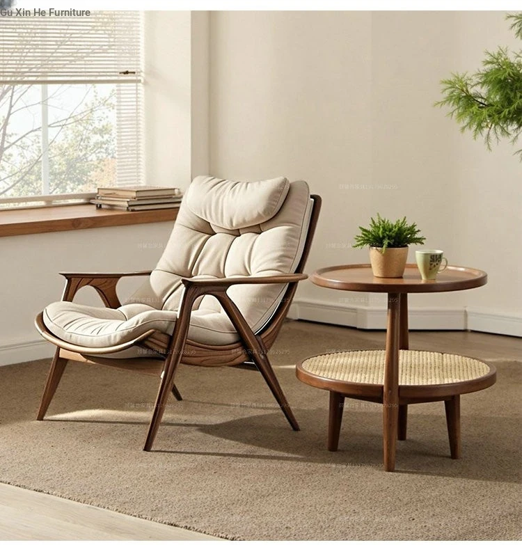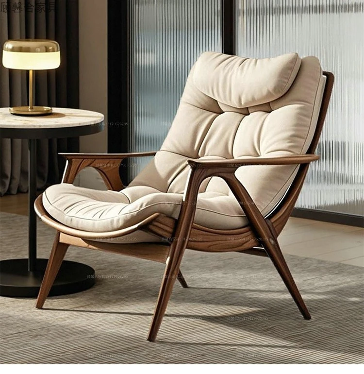 Elegant New Chinese Style Black Walnut Leather Lounge Chair - Italian Minimalist High-End Solid Wood Armchair for Living Room and Balcony