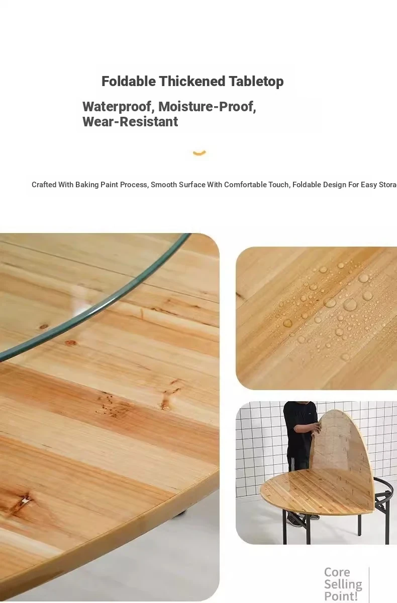 Extra Large Folding Round Dining Table Top for 15-20 People with Lazy Susan - Durable Thickened Cedar Wood Surface for Home Use
