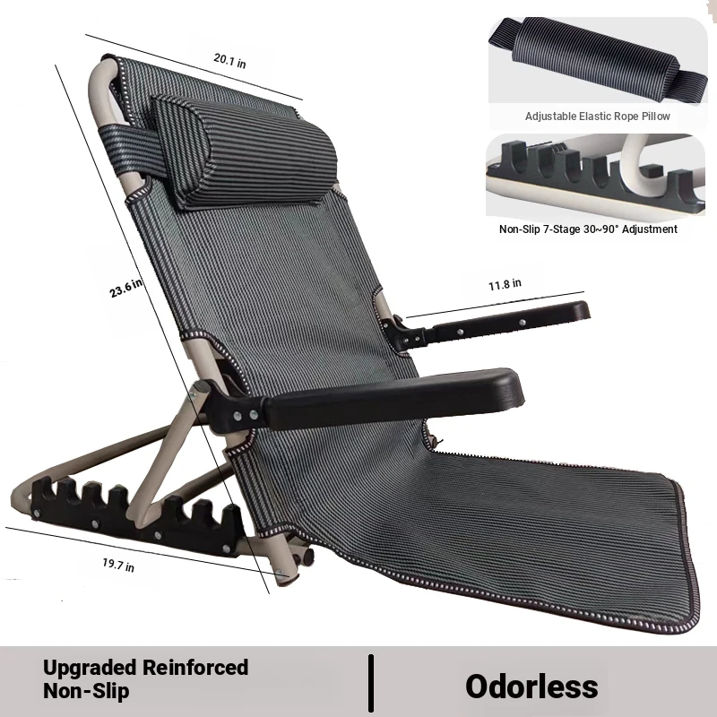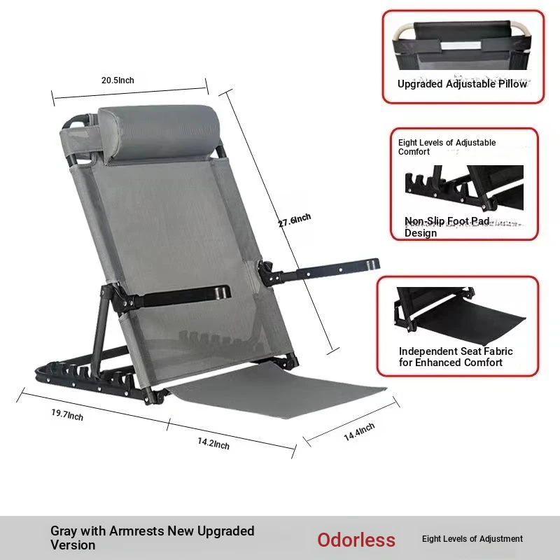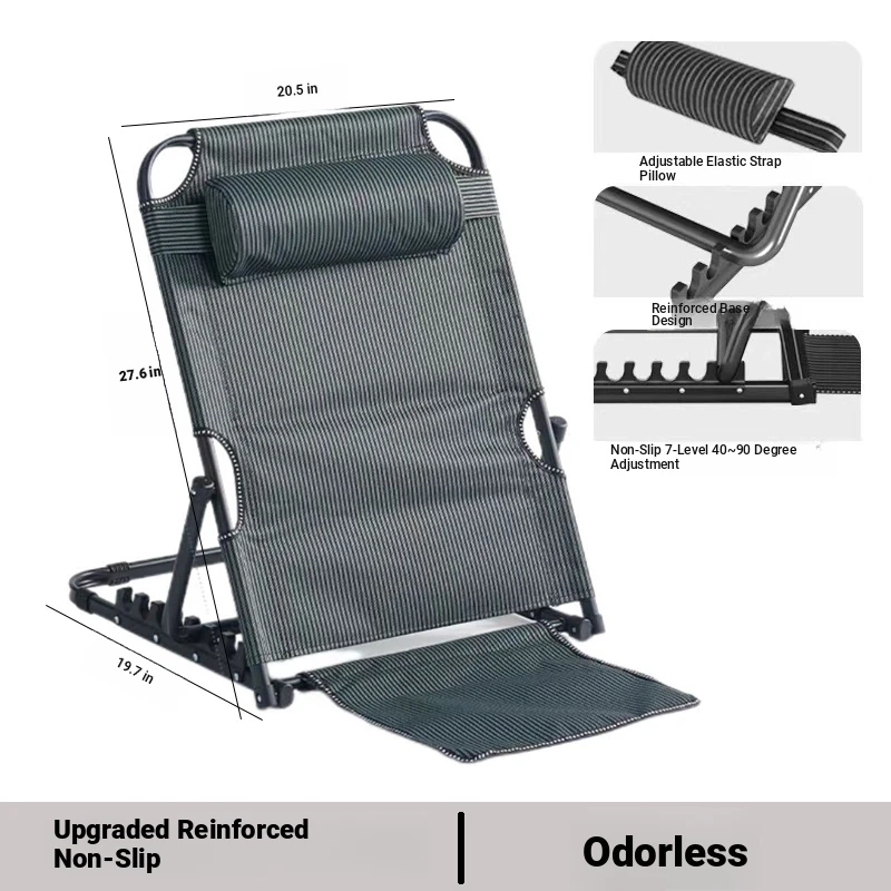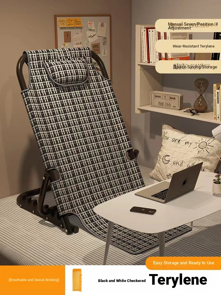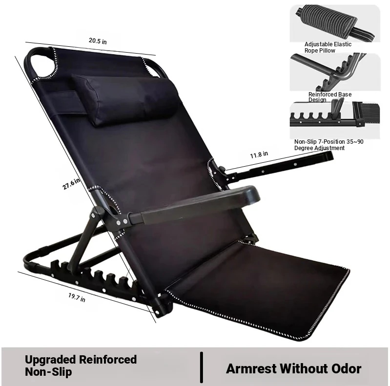 Foldable Bedside Chair with Backrest - Perfect for Dorms and Bedrooms, Legless Design for Comfort, Adjustable Recliner for Seniors, Ideal Computer Chair for Bed Use