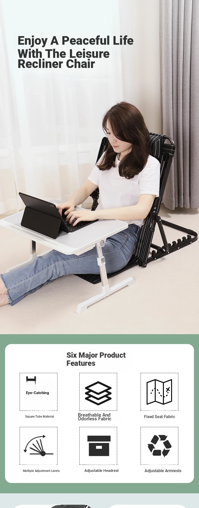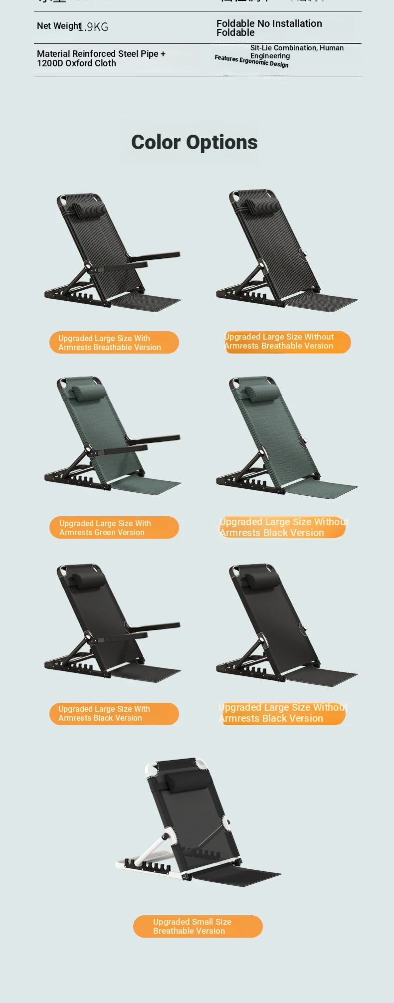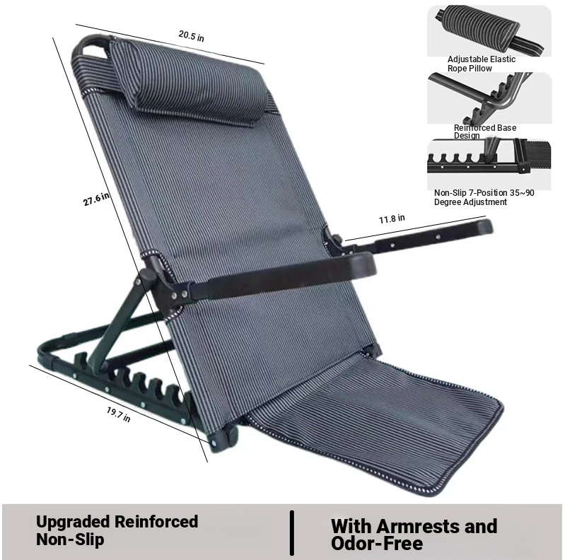 Foldable Bedside Chair with Backrest - Perfect for Dorms and Bedrooms, Legless Design for Comfort, Adjustable Recliner for Seniors, Ideal Computer Chair for Bed Use