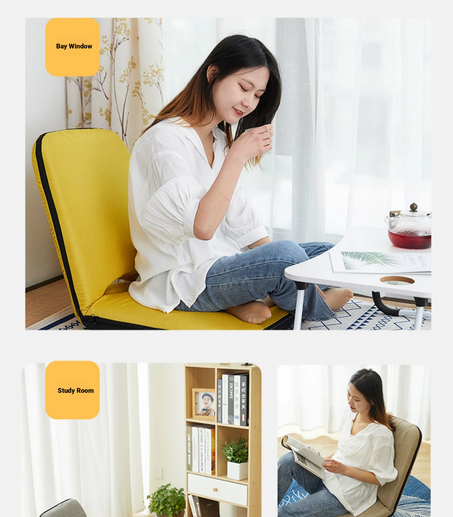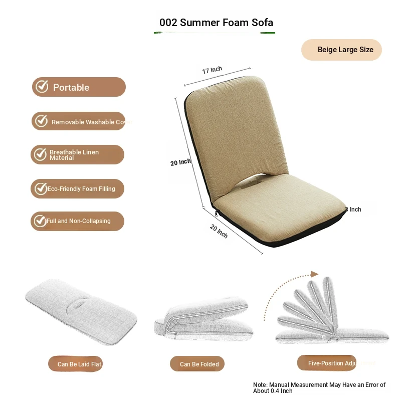 Foldable Tatami Chair with Backrest - Versatile Sofa Bed for Window Nooks, Compact Lounge Chair with Cushioned Seat, Perfect for Single Use and Space-Saving Solutions.