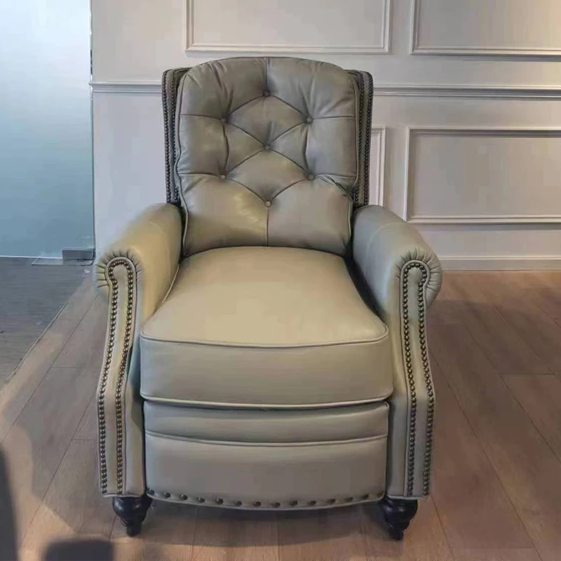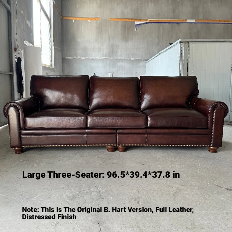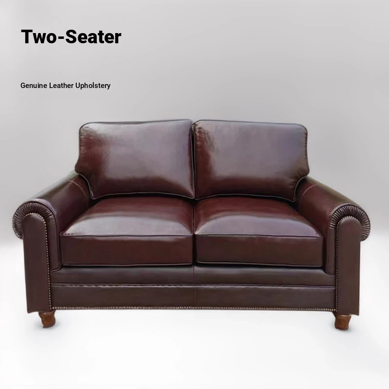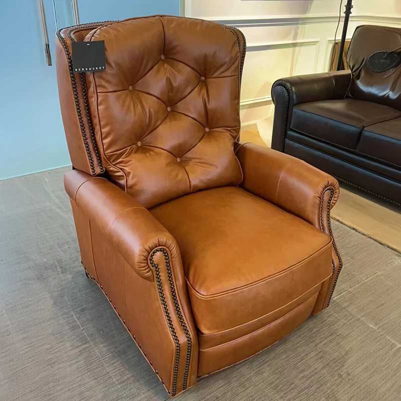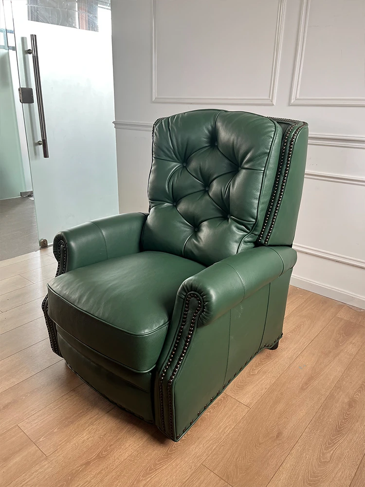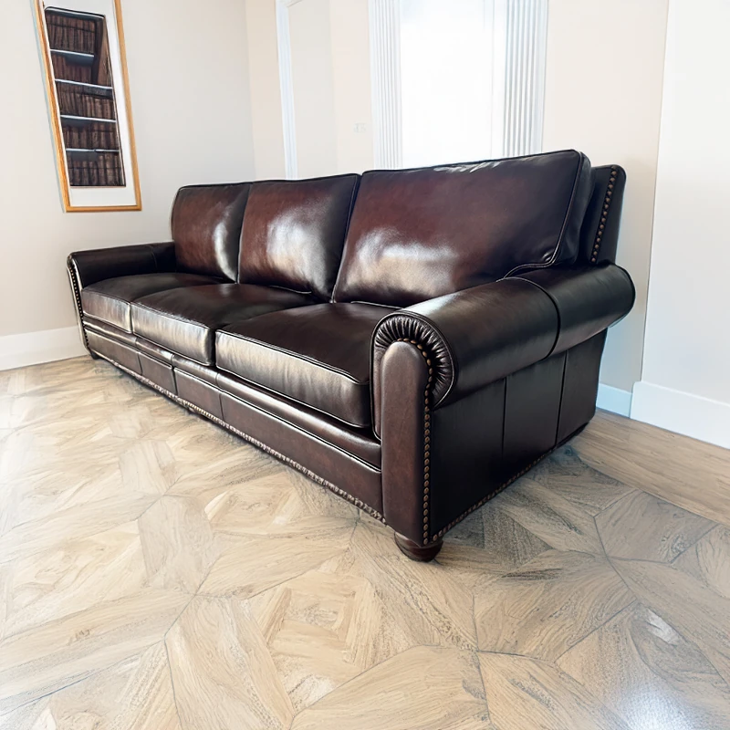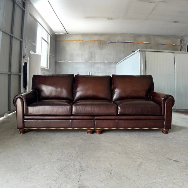 Genuine Leather Recliner Sofa - Handcrafted Top Grain Cowhide with Elegant Patina, Premium Feather Filling, Vintage Style for Cigar Rooms and Luxurious Living Spaces