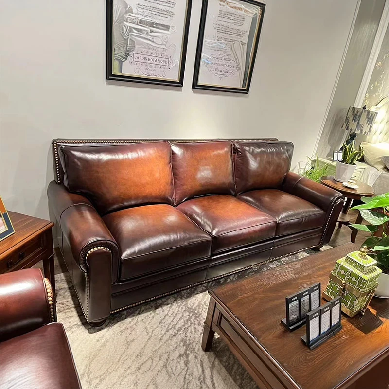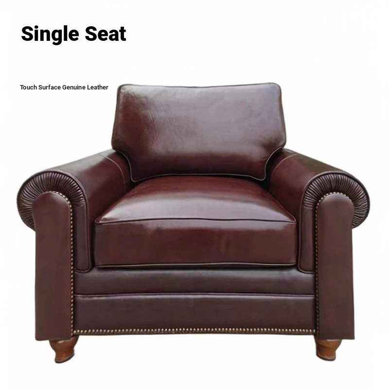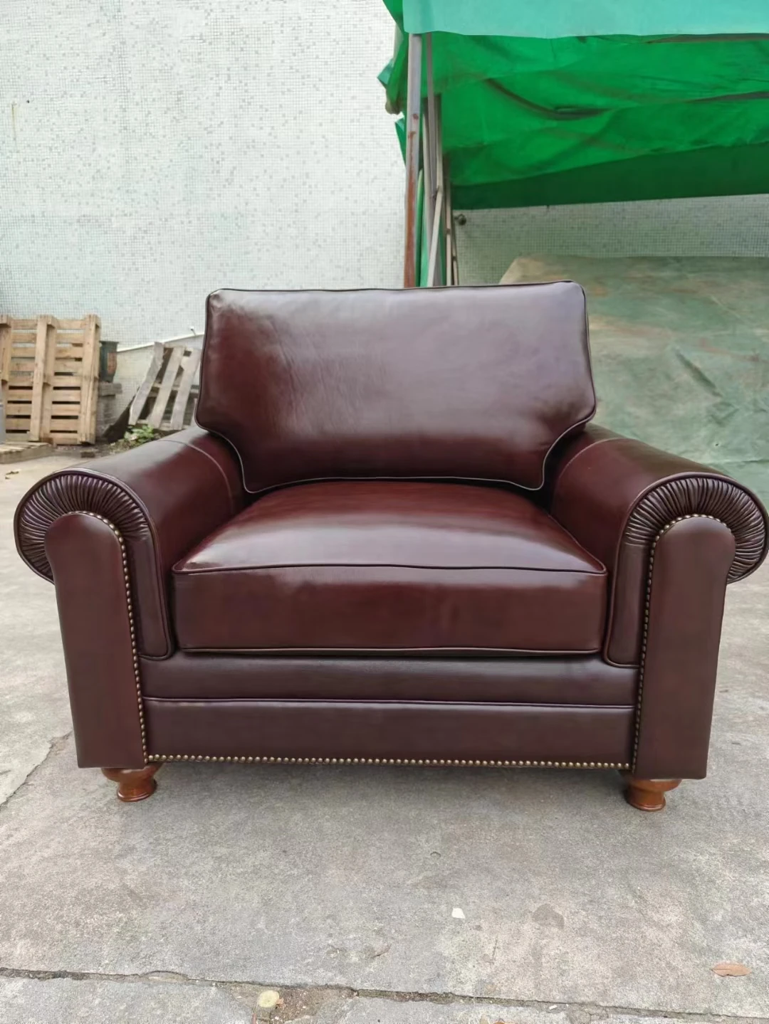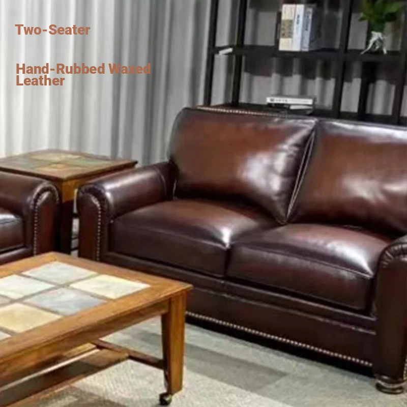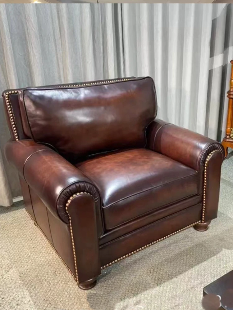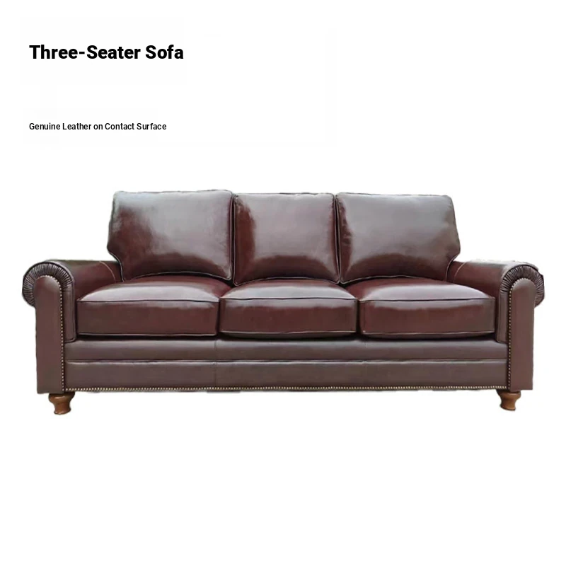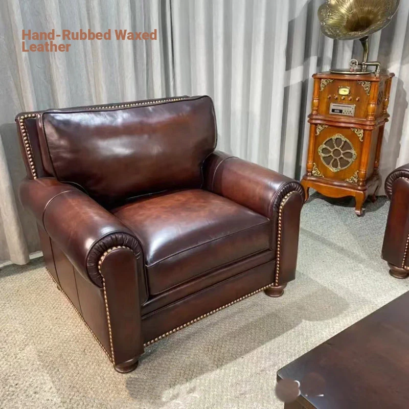 Genuine Leather Recliner Sofa - Handcrafted Top Grain Cowhide with Elegant Patina, Premium Feather Filling, Vintage Style for Cigar Rooms and Luxurious Living Spaces