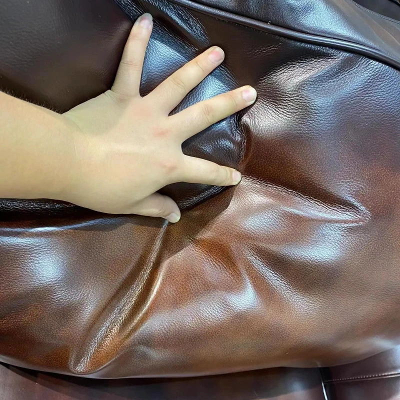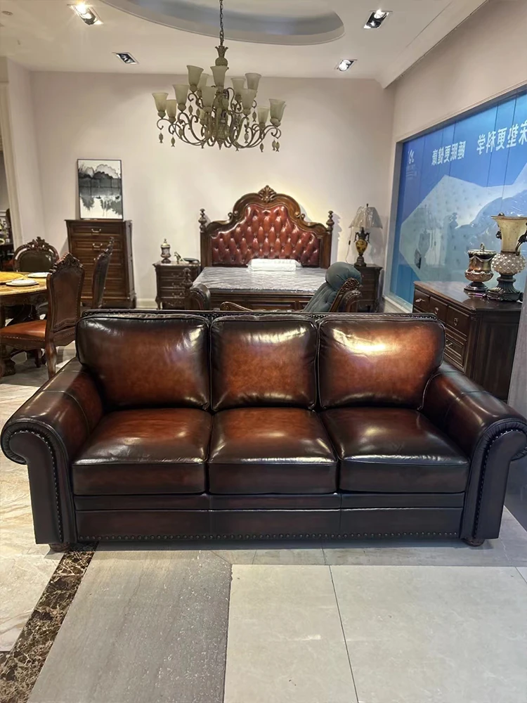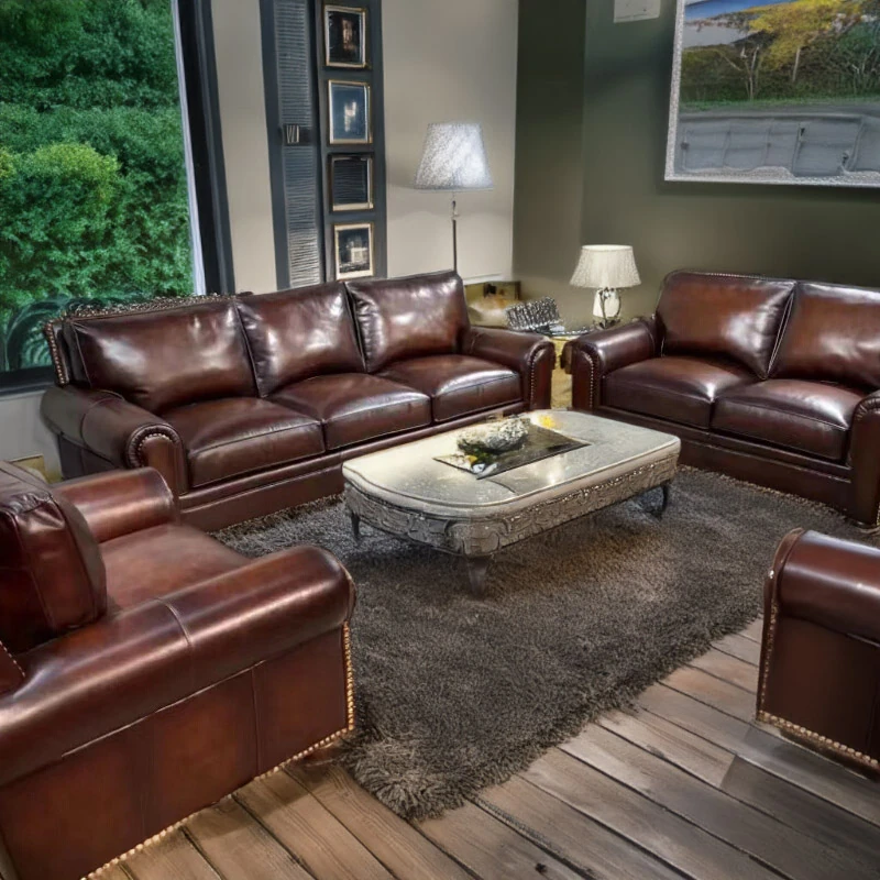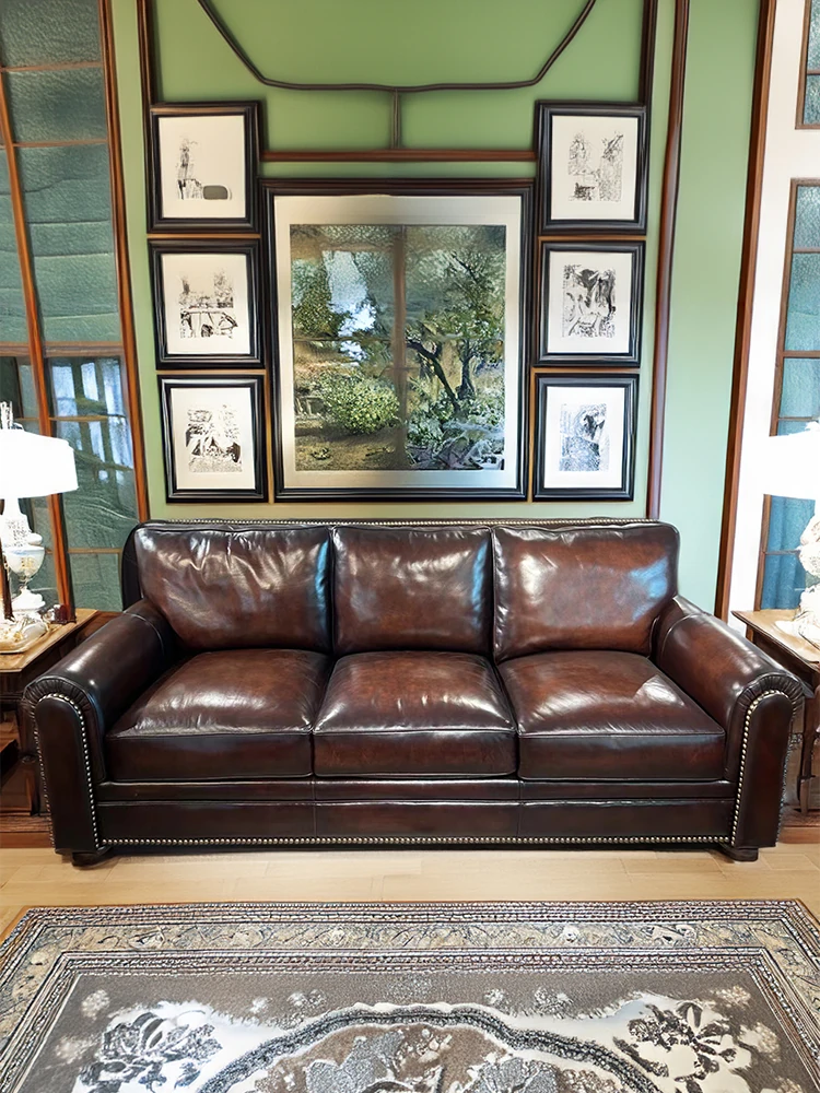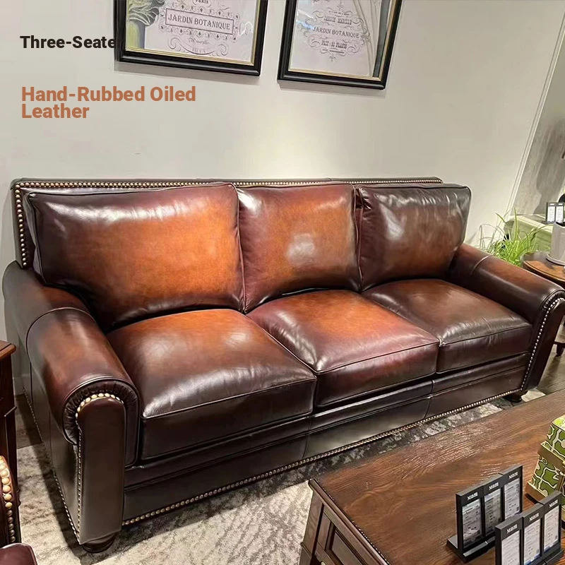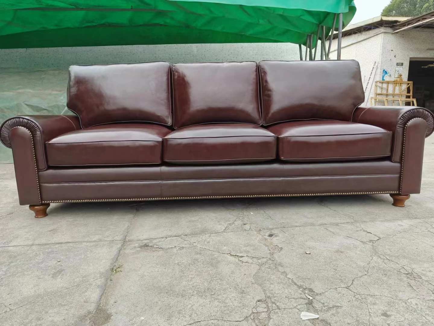 Genuine Leather Recliner Sofa - Handcrafted Top Grain Cowhide with Elegant Patina, Premium Feather Filling, Vintage Style for Cigar Rooms and Luxurious Living Spaces