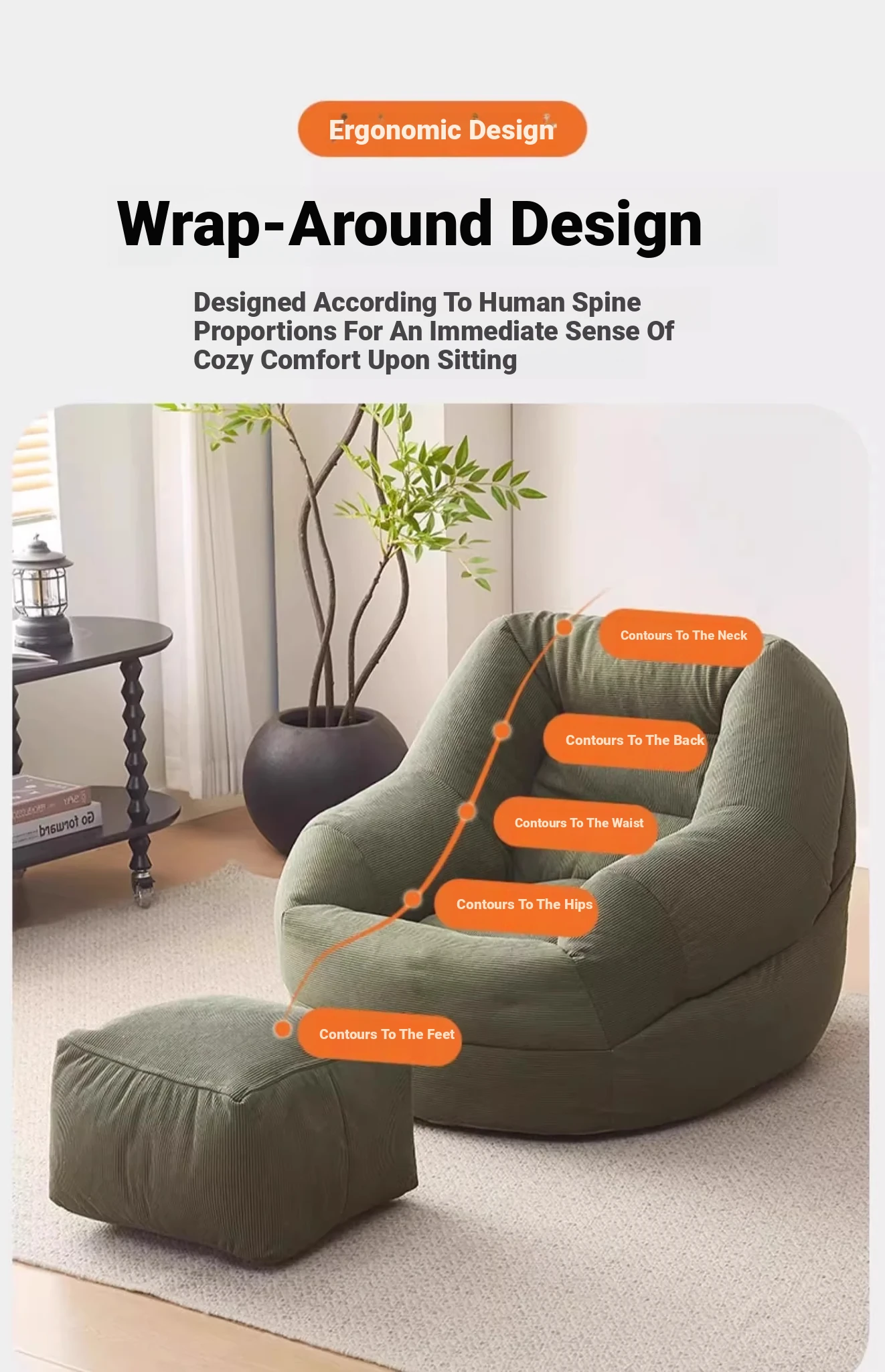 Japanese Corduroy Removable and Washable Lazy Sofa - Perfect for Tatami, Living Room, Balcony, and Relaxation. Ideal Single Sofa for Kids!