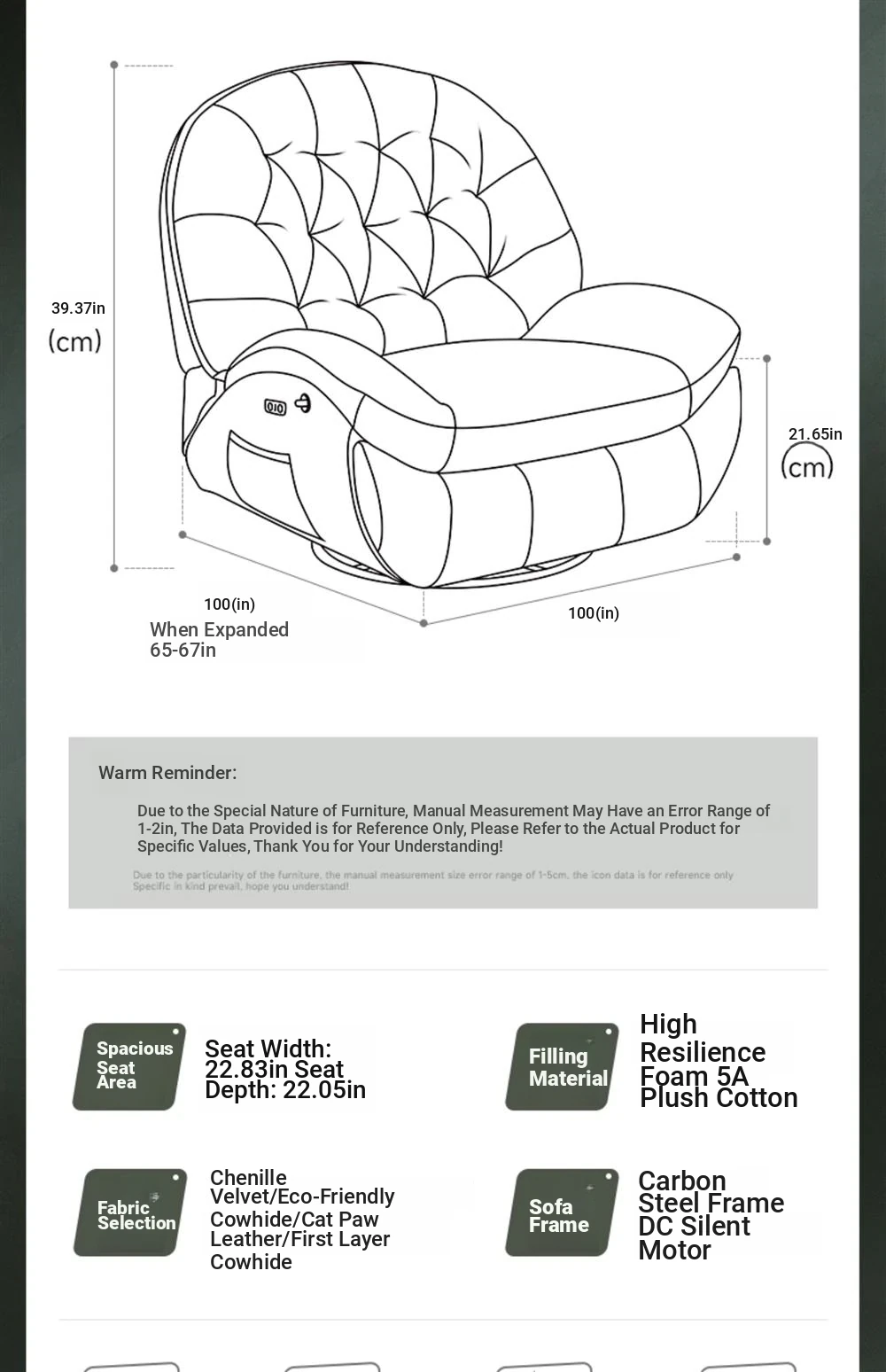 Lazy Balcony Sofa Chair - Electric Multi-Functional Lounge Chair for Relaxation, Space-Style First-Class Single Rocking Chair for Living Room Comfort