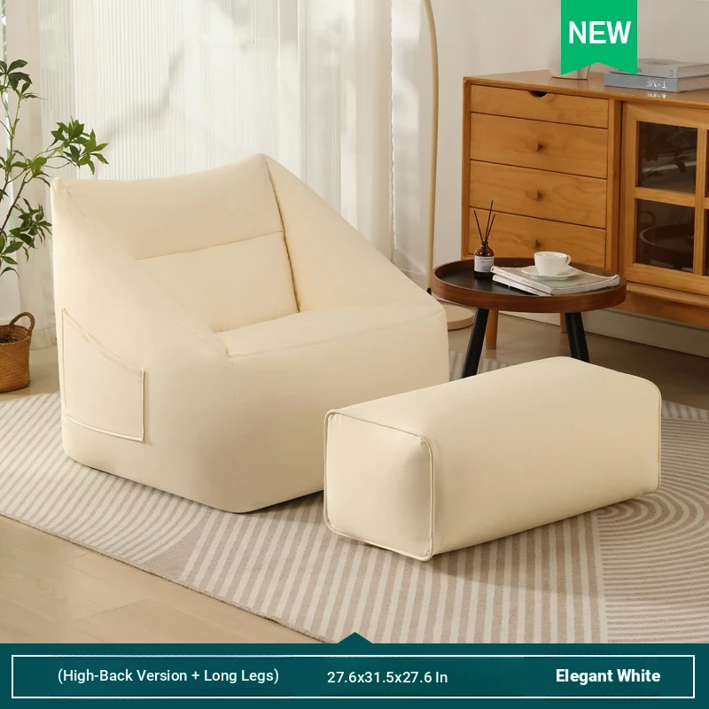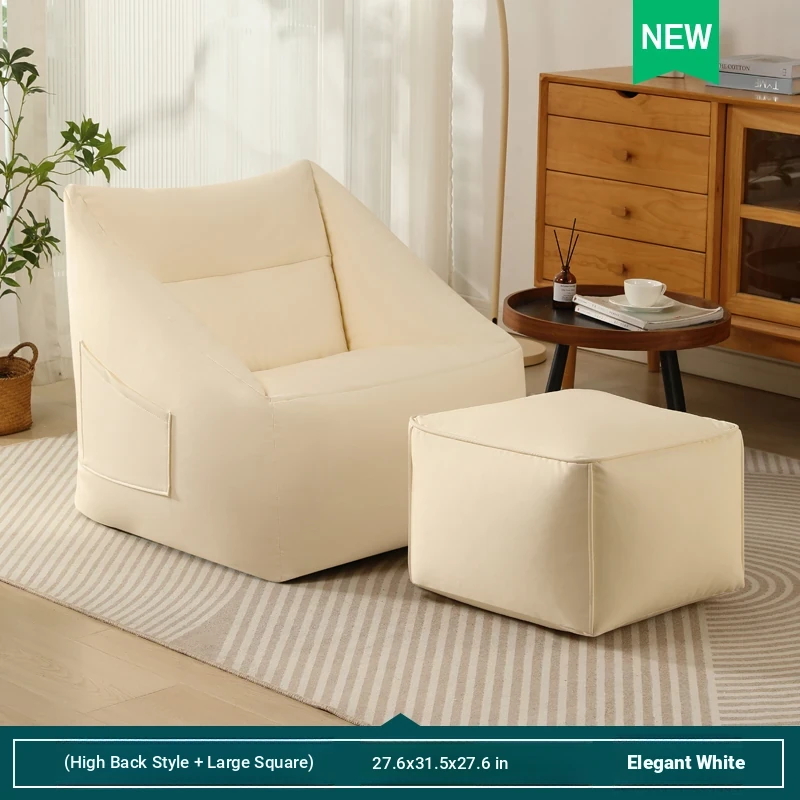 Plain elegant white-ultra-fiber leather [upgrade EPP filling] + square stool