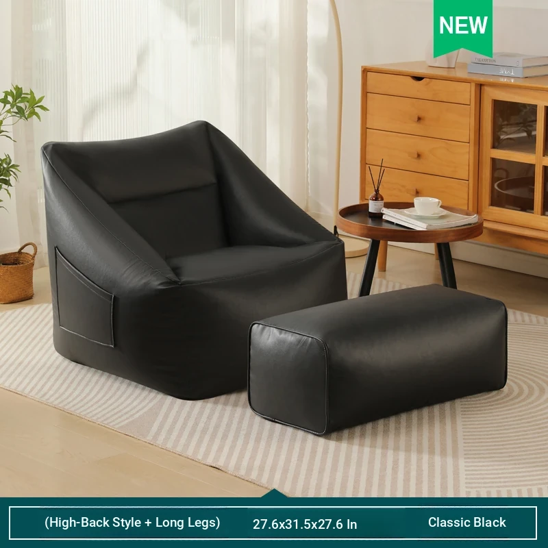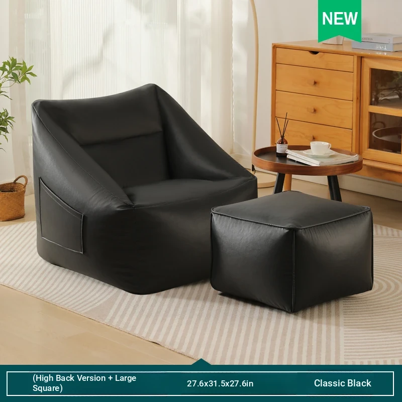 Classic black-fiber leather [Environmental-Friendly EPS filling] + square stool