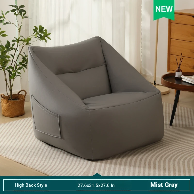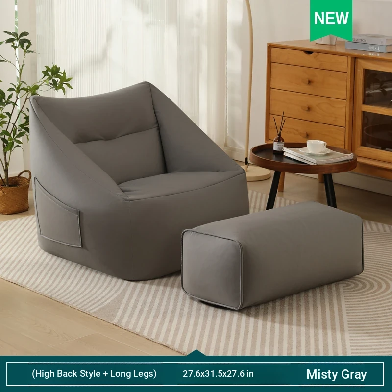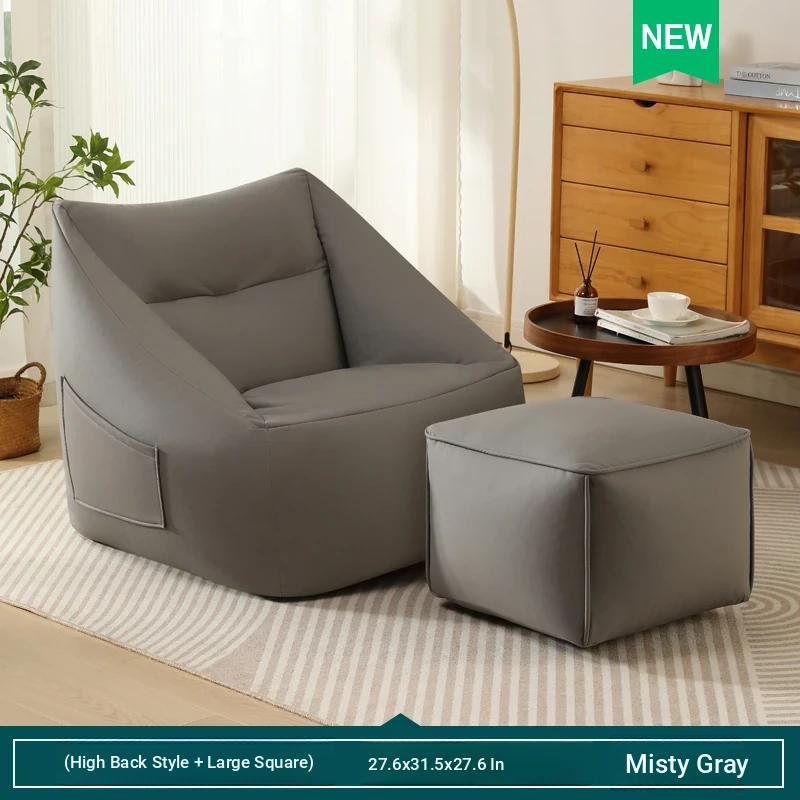 Mist Grey-Superfiber Leather [Environmental-Friendly EPS Filling] + Square Stool