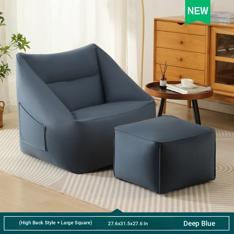 Dark blue-ultra-fiber leather [Environmental-Friendly EPS filling] + square stool