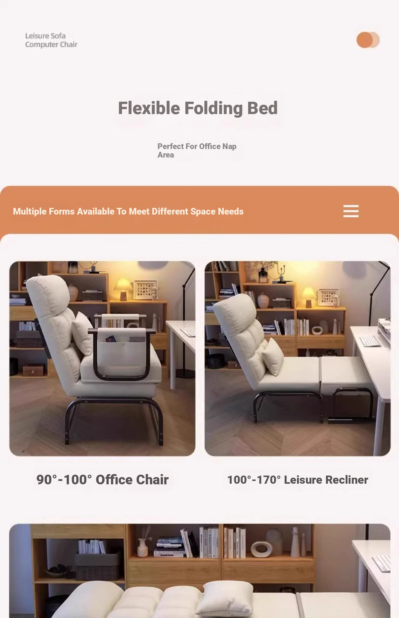 Lazy Sofa - Convertible Single Dog Bed, Foldable Recliner for Office Naps, Ideal for Home and Bedroom Use, Ergonomic Backrest Computer Chair