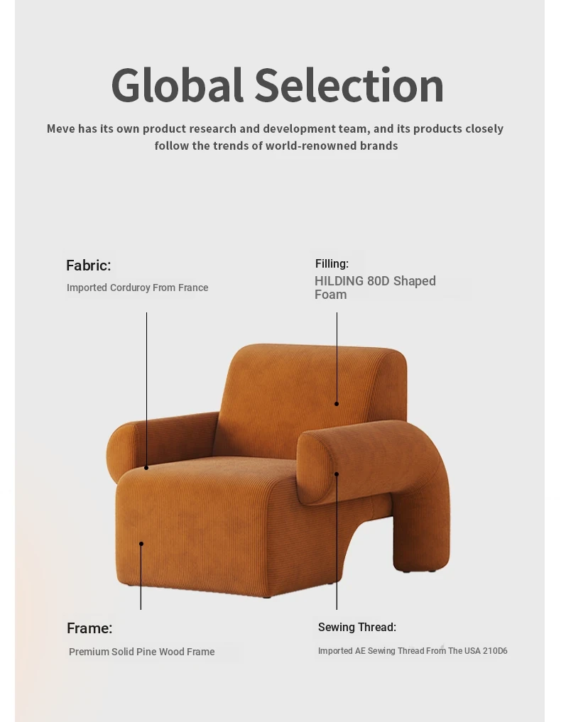 MEVE Italian Single Sofa Chair - Luxurious Velvet Lounge Chair for Living Room, Designer Nordic Style Lazy Chair, Perfect for Relaxation and Comfort