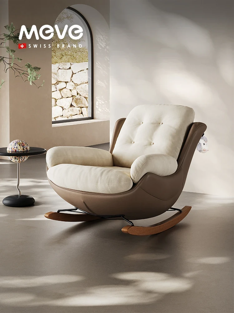 MEVE Patent Rocking Chair - Italian Minimalist Luxury Lounge Chair for Balcony and Living Room, Designer Lazy Sofa Chair for Home Comfort