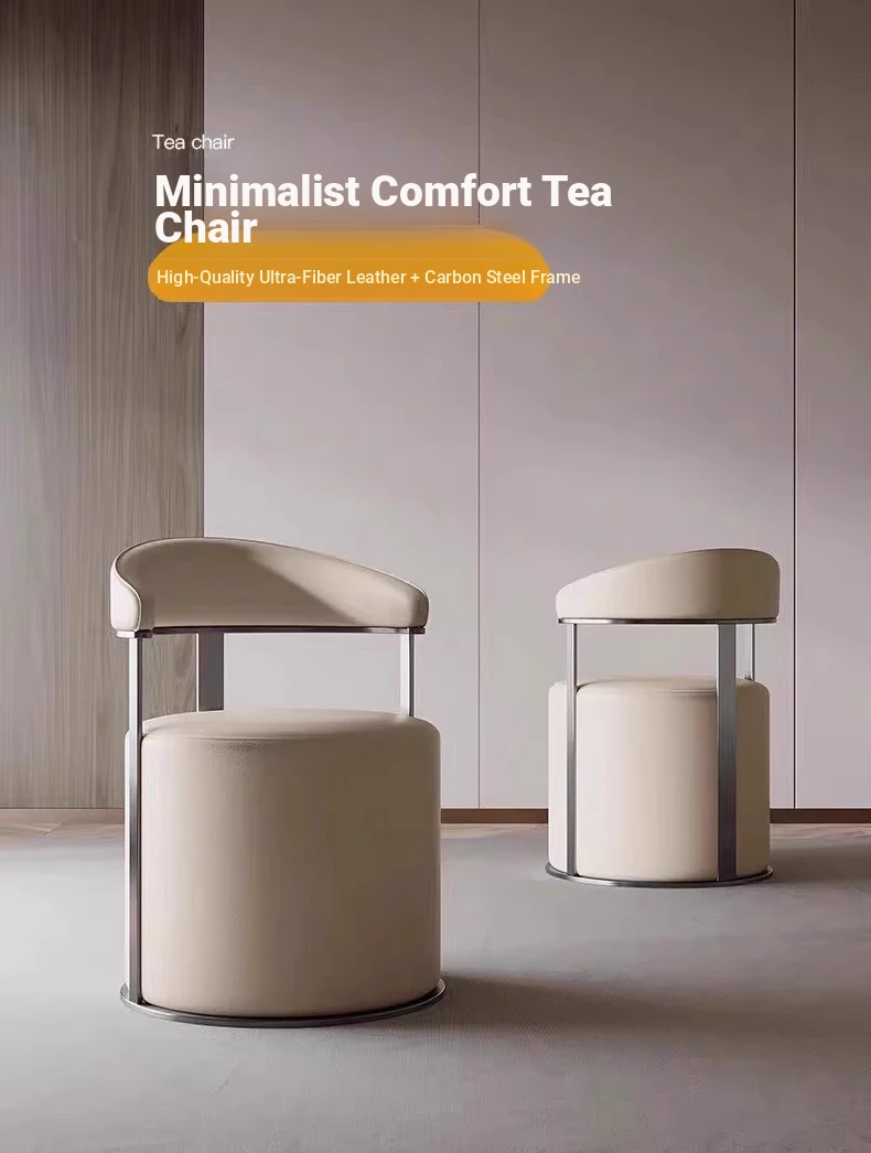 Modern Crescent Chair - Stylish Tea Chair for Home & Lounge, Elegant Backrest Seating for Conversations, Versatile Round Stool, Perfect for Living Room Relaxation or Nail Art Sessions.