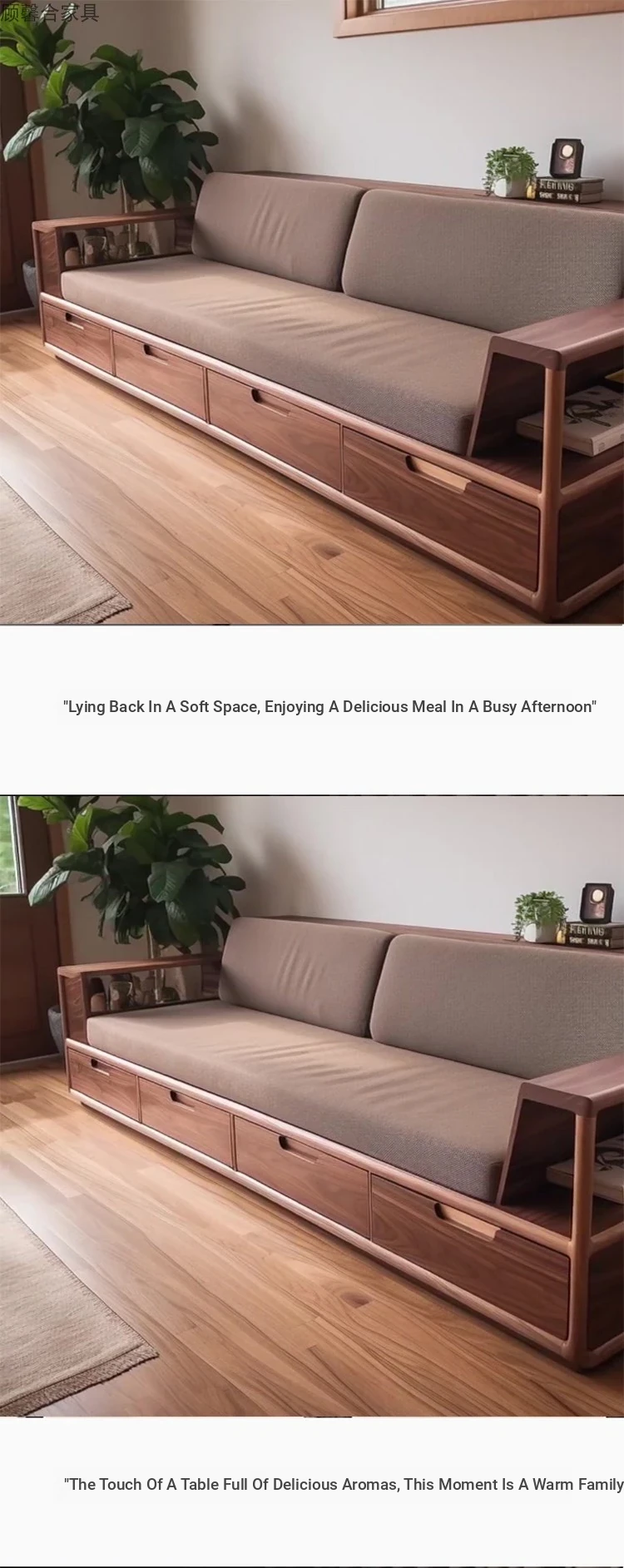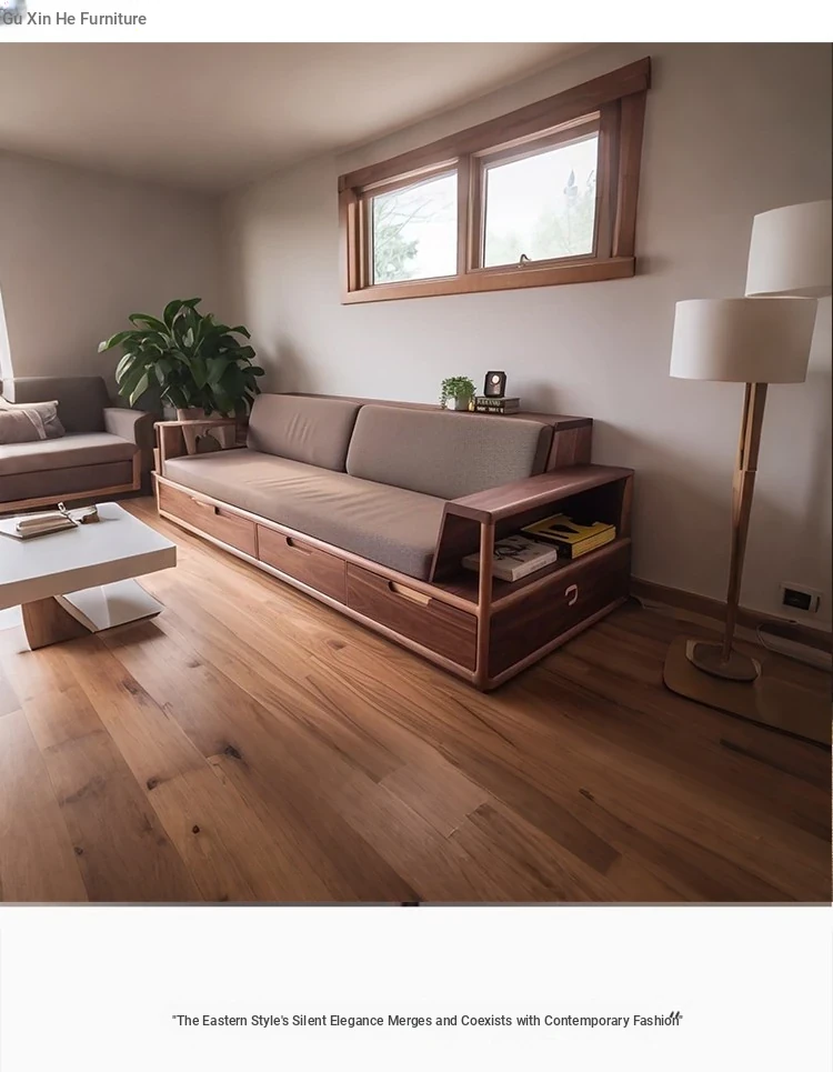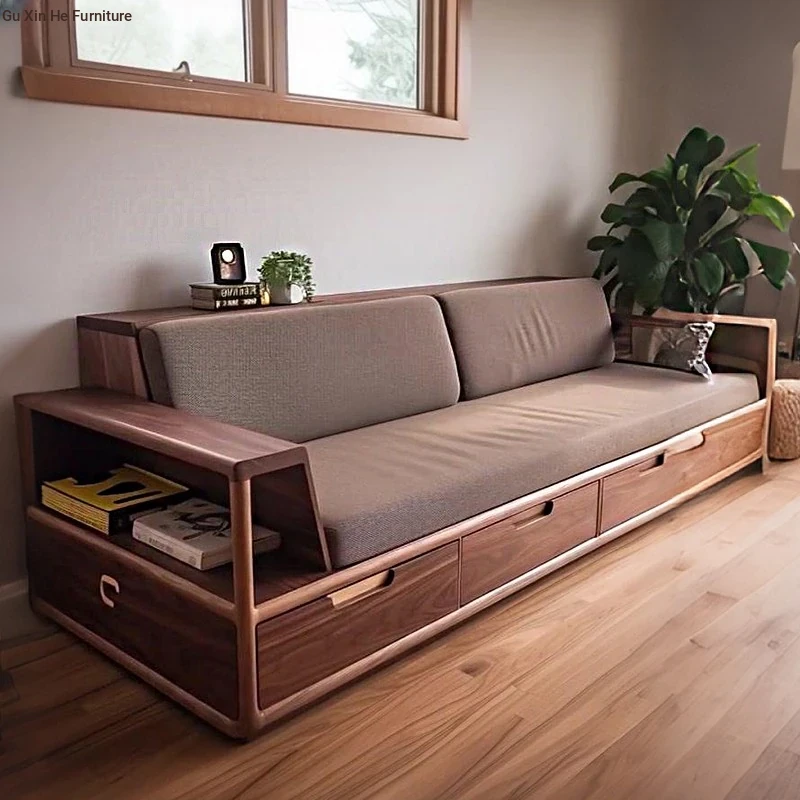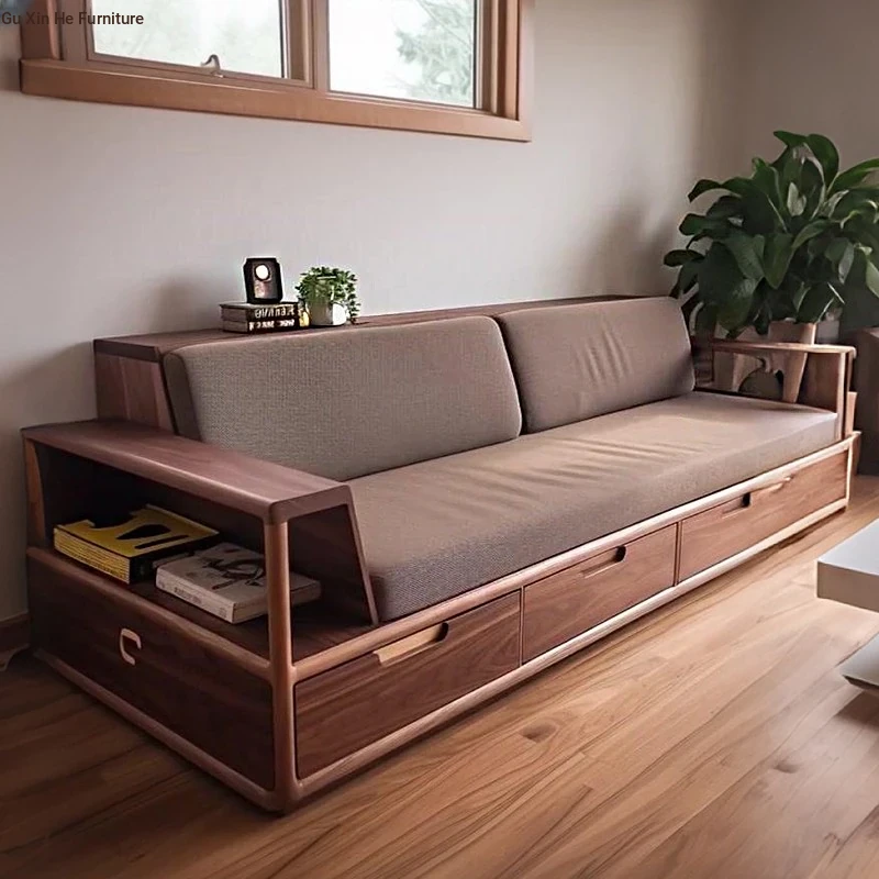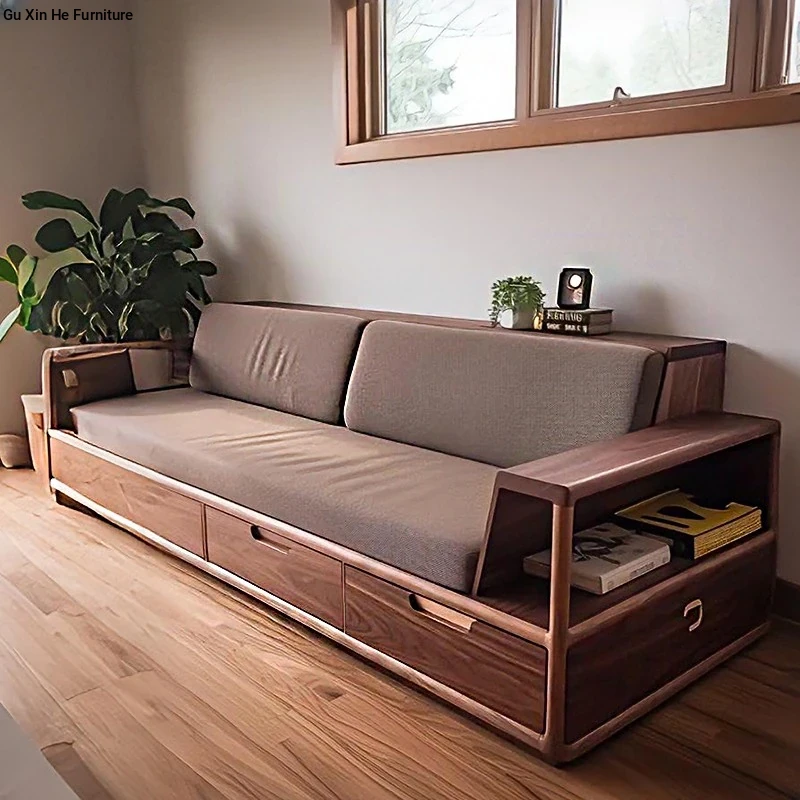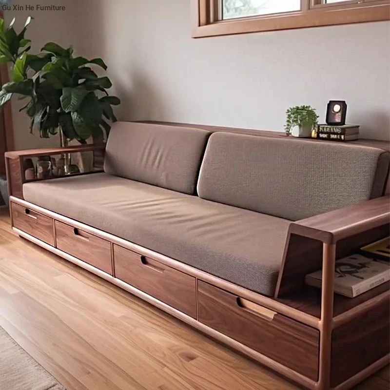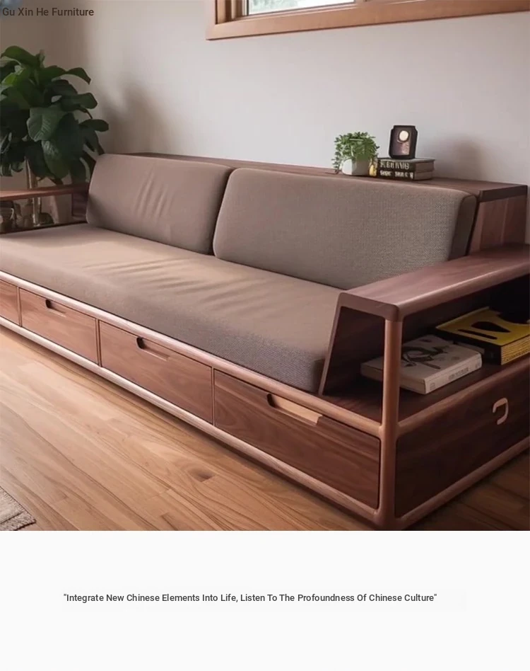 Modern Minimalist Living Room Sofa 2025 New Arrival - Premium North American Black Walnut Wood Solid Sofa with Drawers for Elegant Comfort