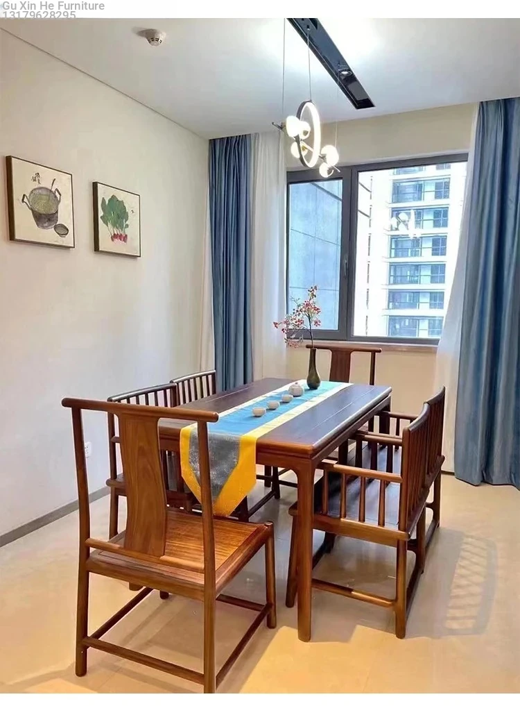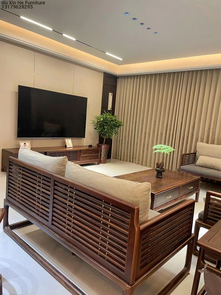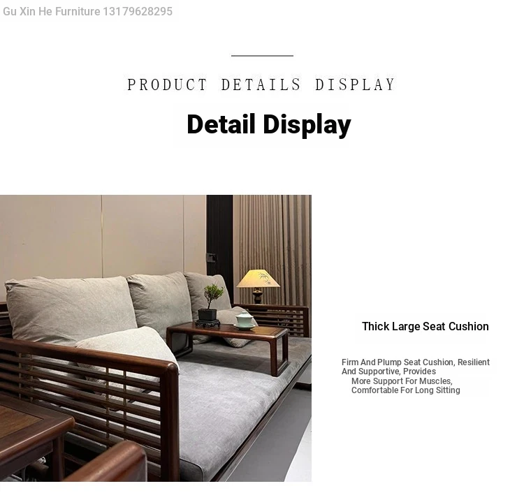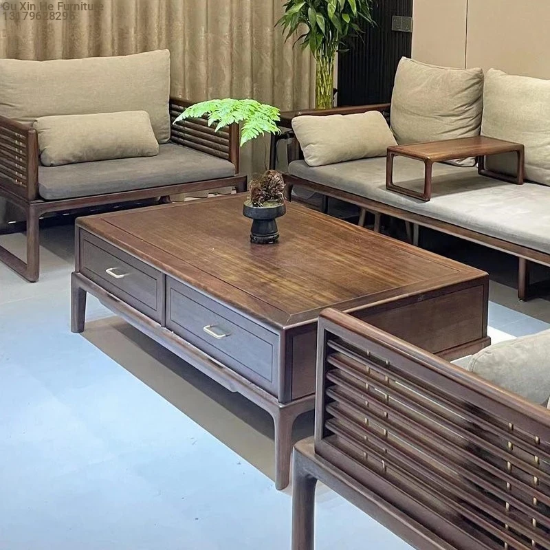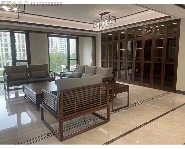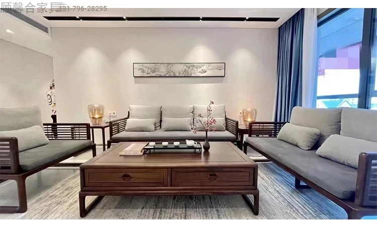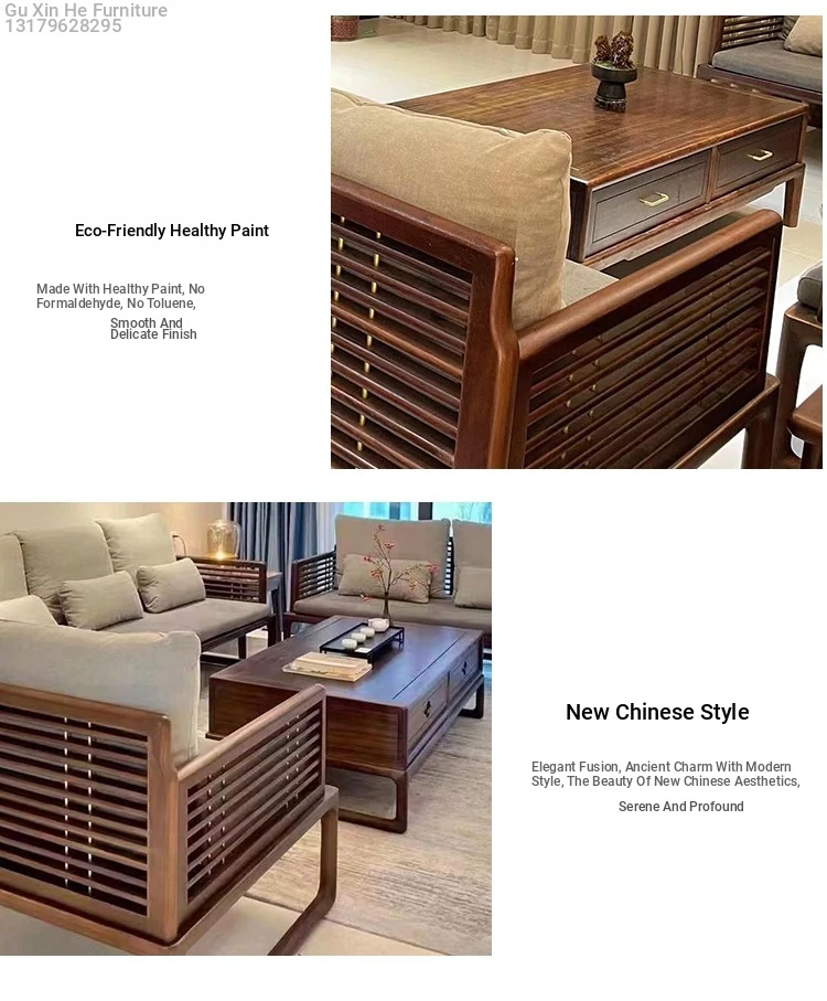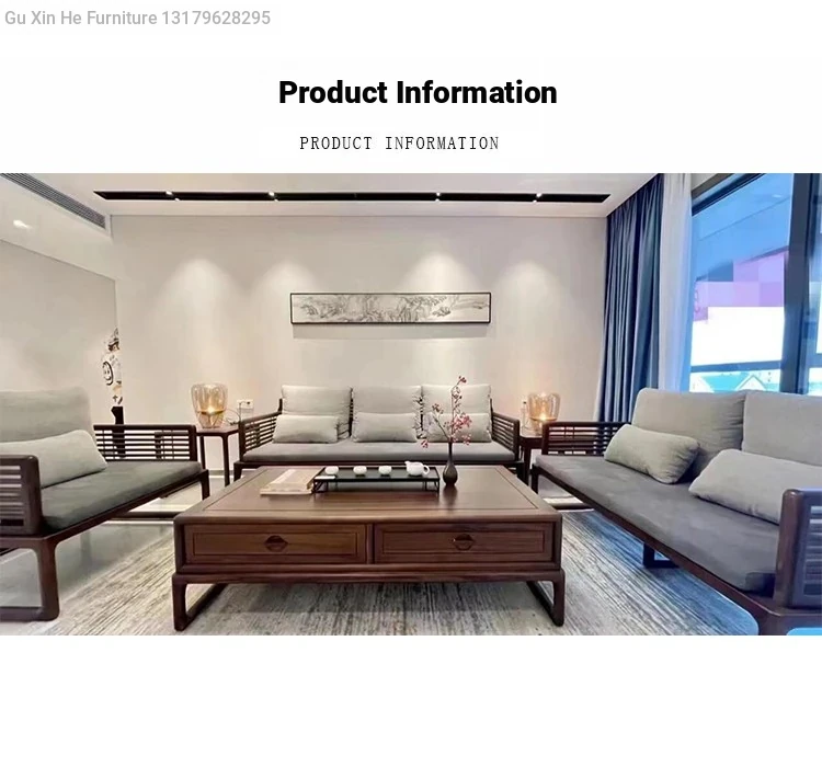 Modern Minimalist New Chinese Style Solid Wood Sofa Set - Versatile Winter/Summer Use, Perfect for Small and Large Spaces, Featuring Elegant Fabric Design and Zen Aesthetic.