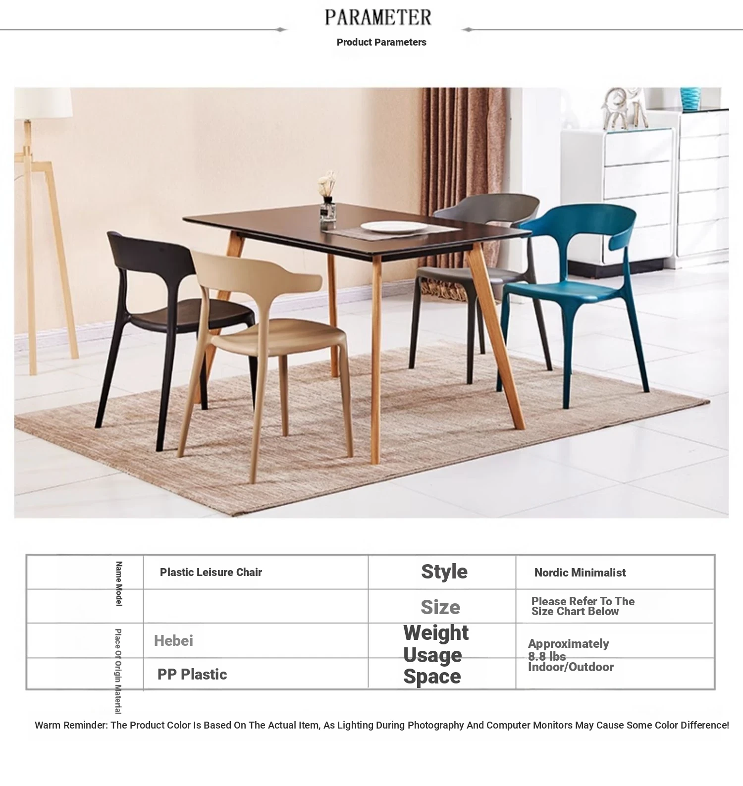 Modern Minimalist Plastic Dining Chair - Nordic Style Creative Lounge Chair with Backrest for Home Use, Trendy and Comfortable Design