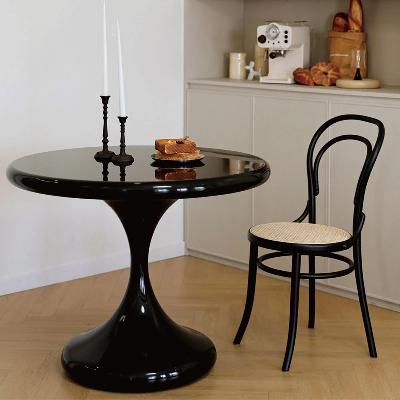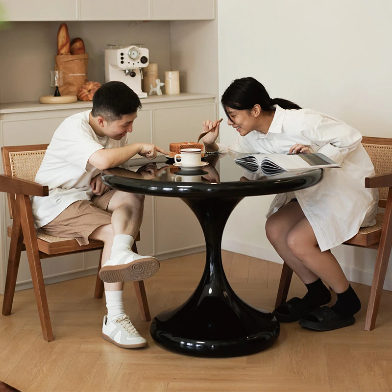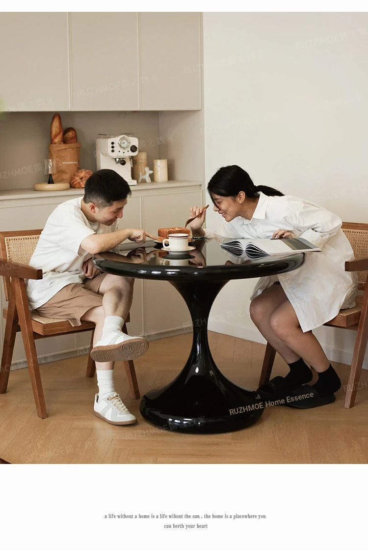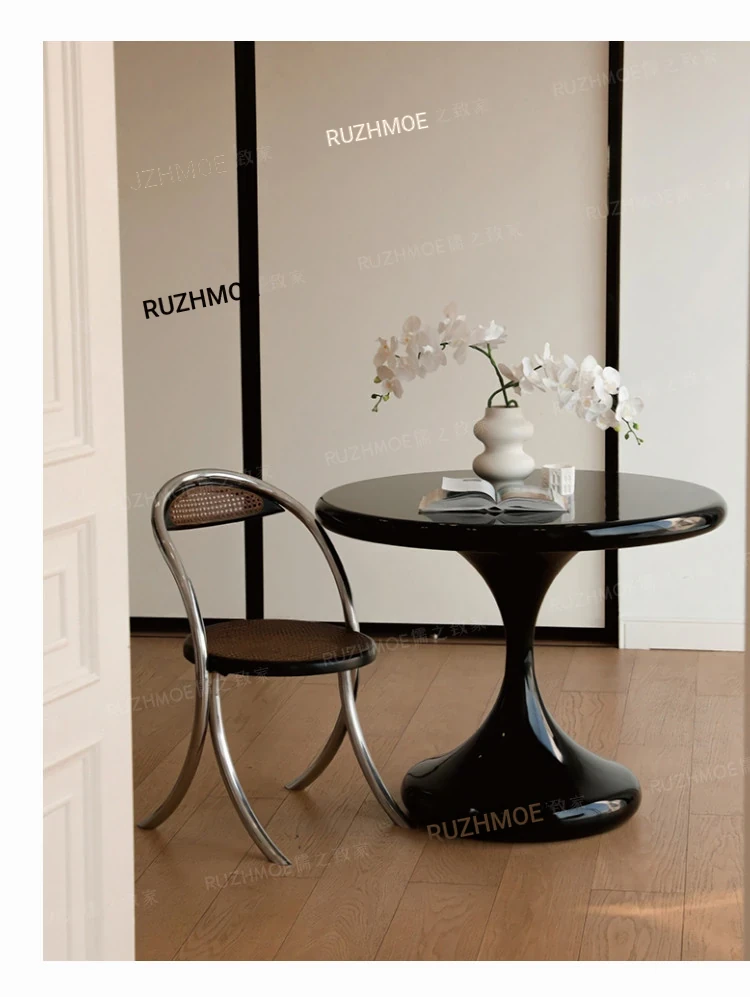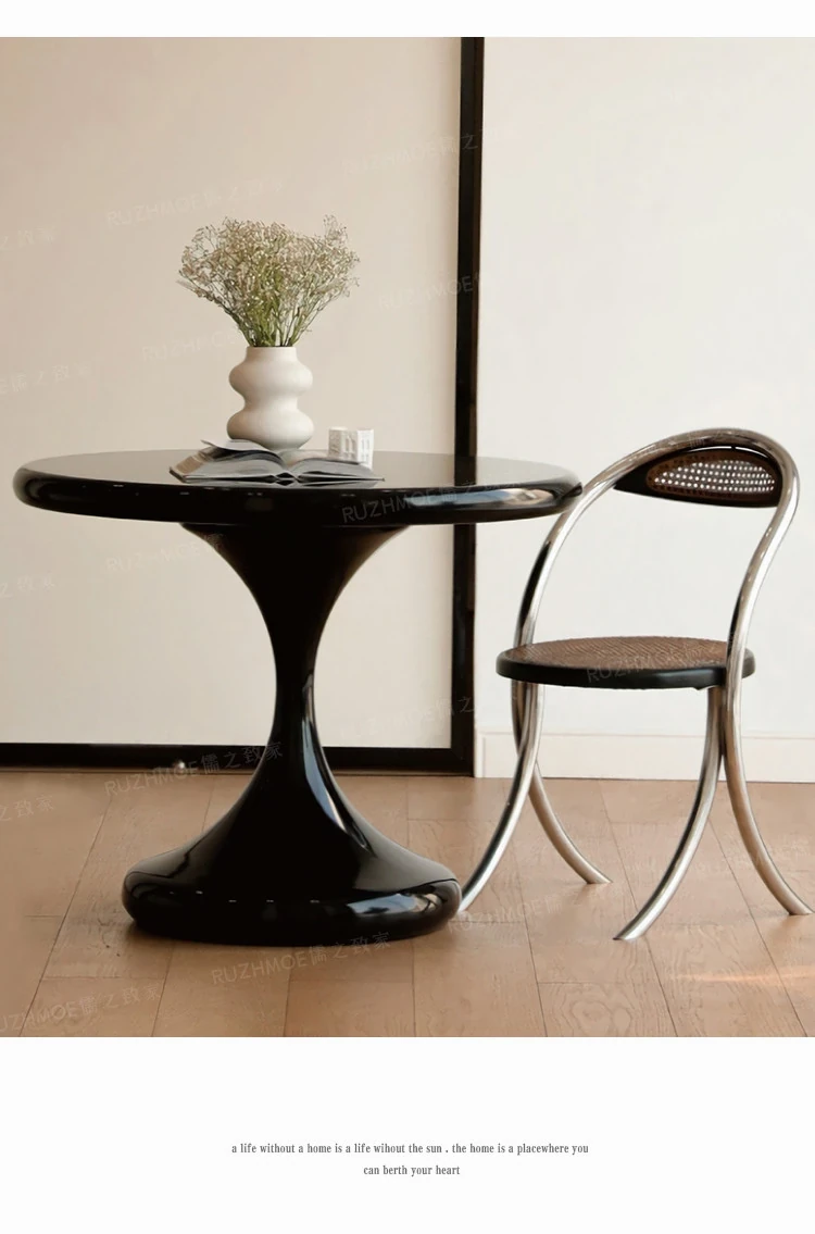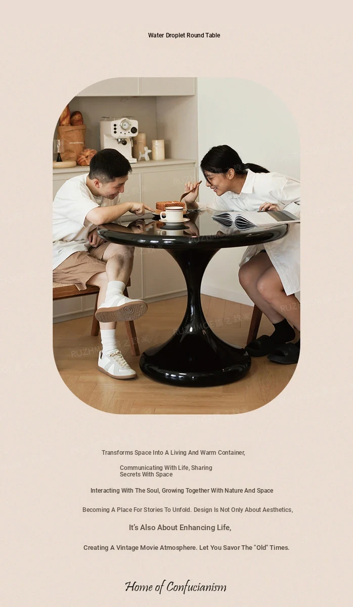 Modern Minimalist Round Dining Table - Black Water Drop Design for Home & Office Use, Perfect for Small Spaces and Casual Meetings, Retro Charm Meets Contemporary Style