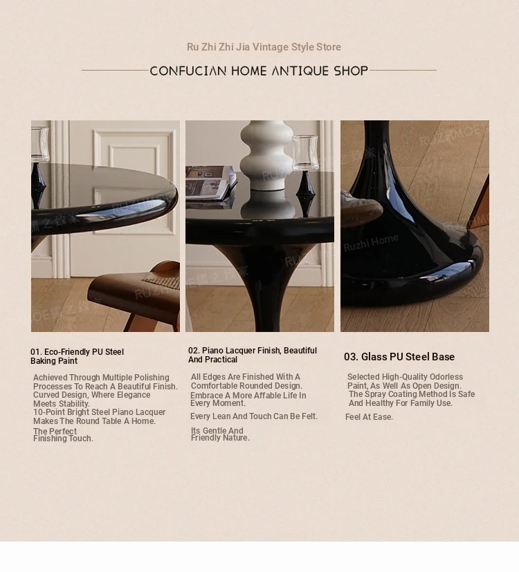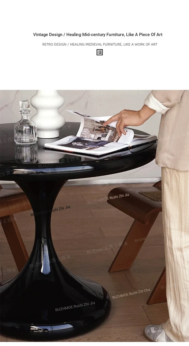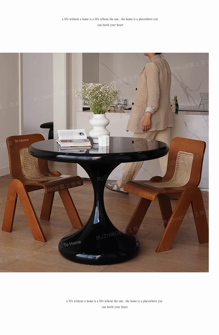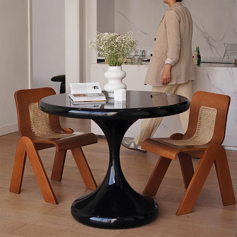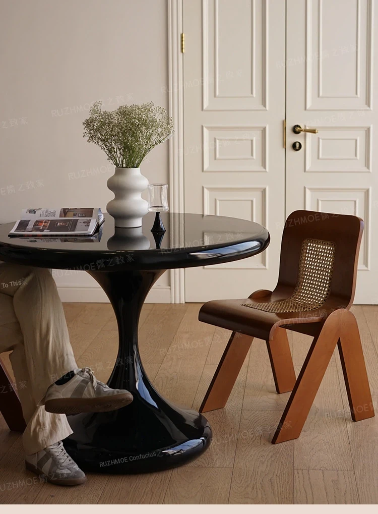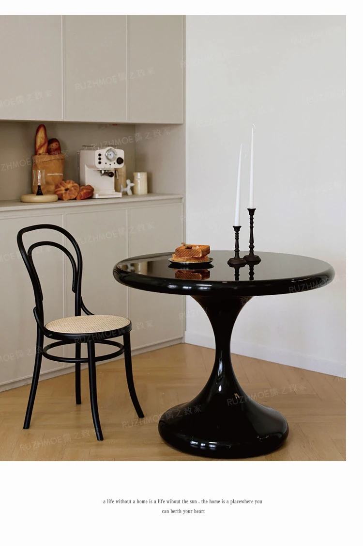 Modern Minimalist Round Dining Table - Black Water Drop Design for Home & Office Use, Perfect for Small Spaces and Casual Meetings, Retro Charm Meets Contemporary Style
