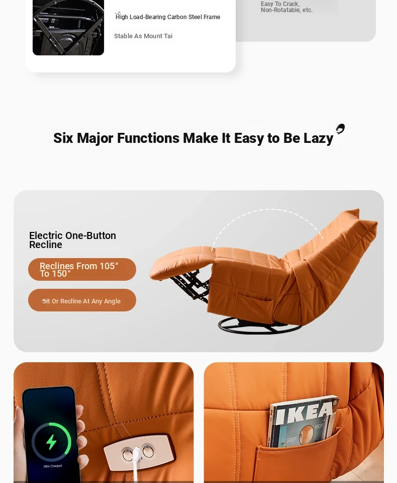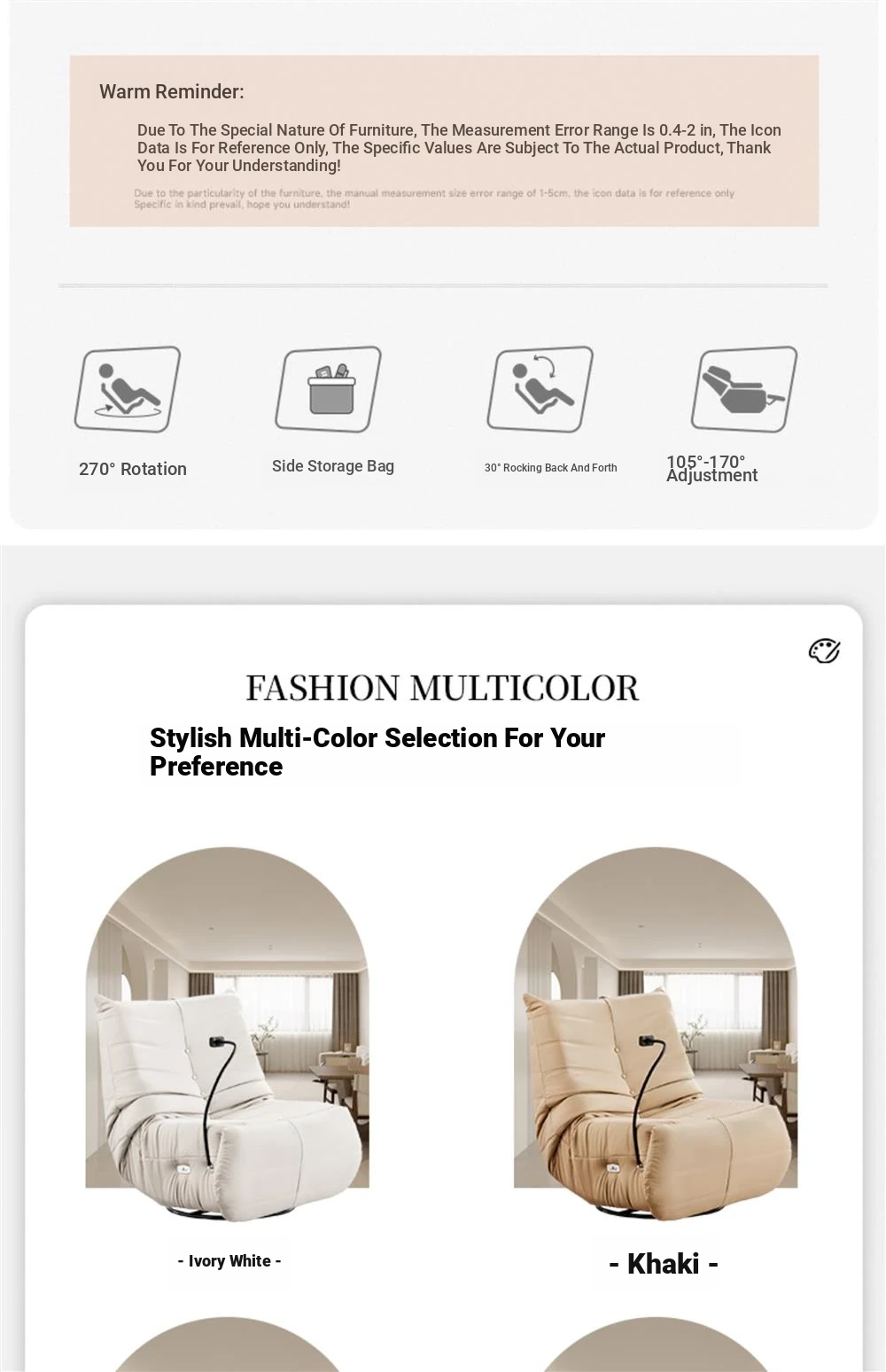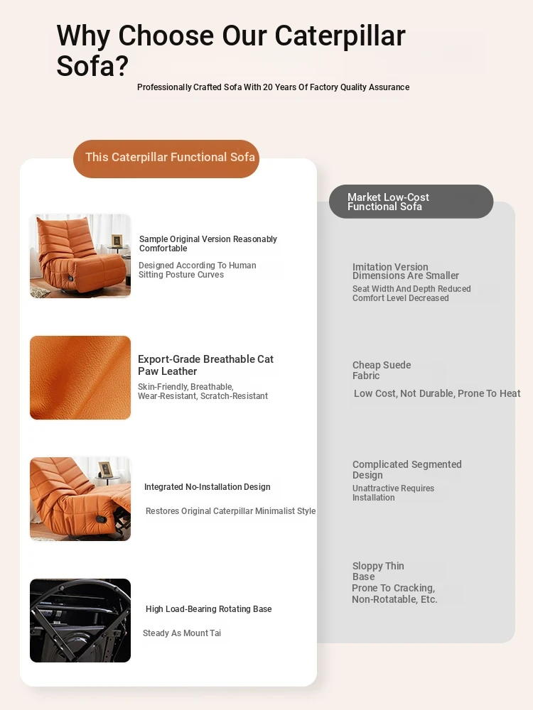 Multifunctional Lazy Sofa Bed - Rotatable and Rocking Recliner for One Person, Perfect for Relaxation in Your Living Room - Cozy Caterpillar Design